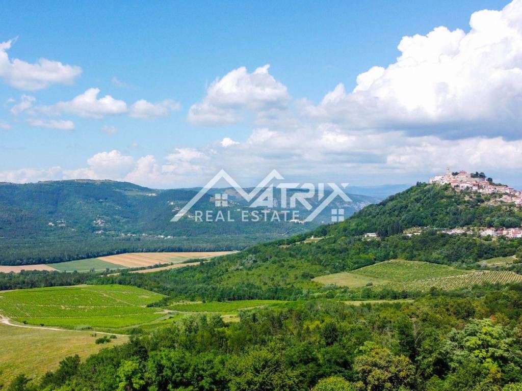 A beautiful complex of building plots with ready-made projects for the construction of several villas with a swimming pool near Motovun. Located on a hill with a gentle slope, this land offers a stunning panoramic view of untouched nature, olive groves and the magical Motovun. With a total area of 5881 m2 and an extremely favorable location in the heart of central Istria, this is an ideal building plot for the construction of a spacious modern complex of villas.