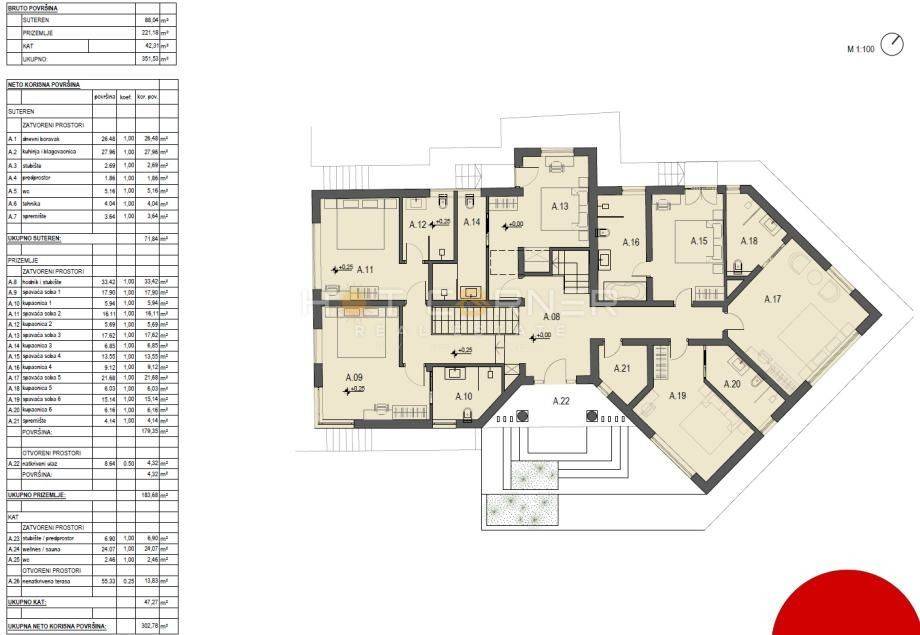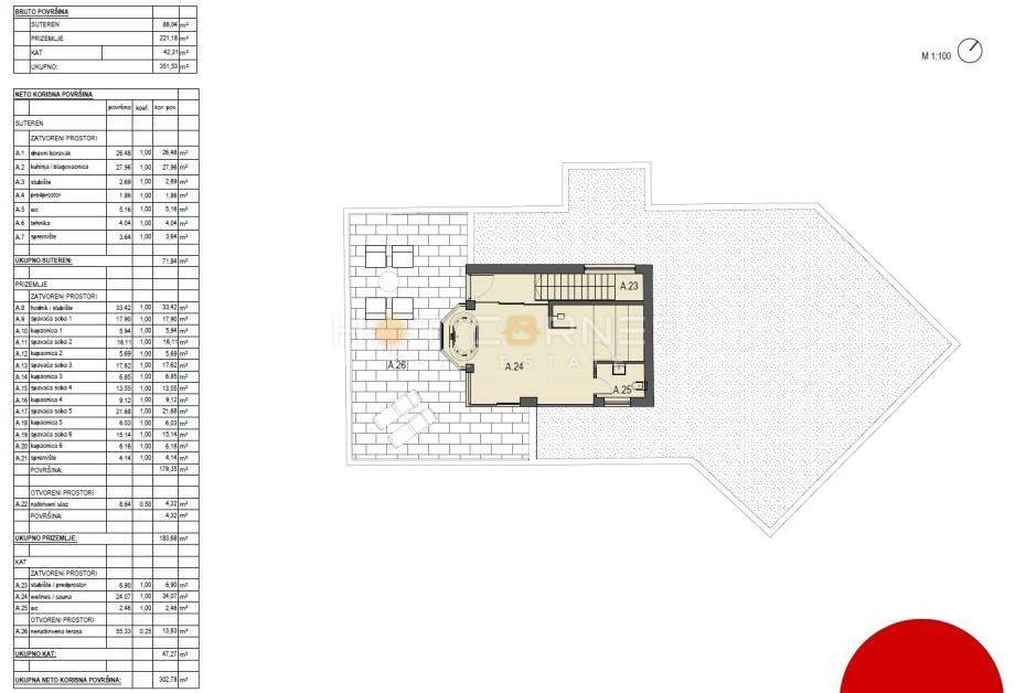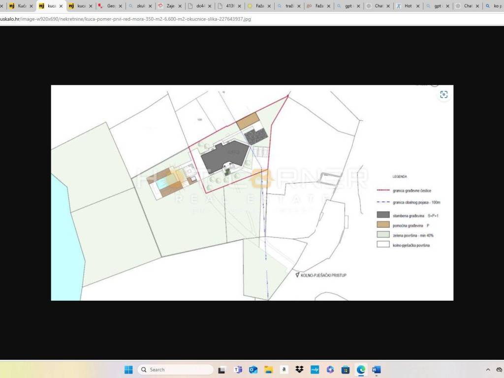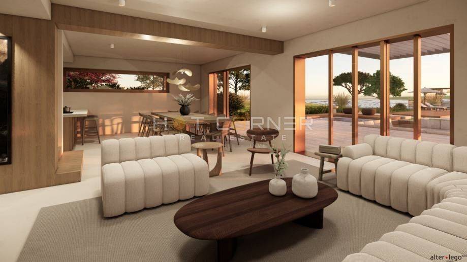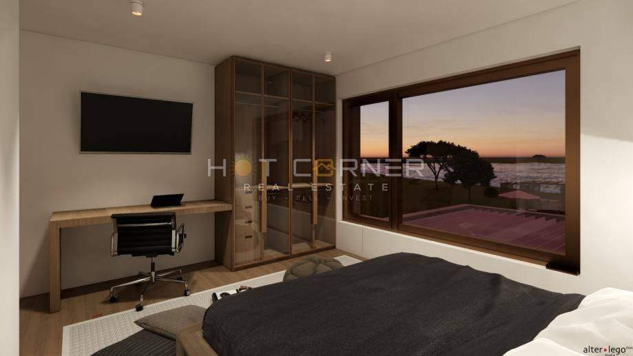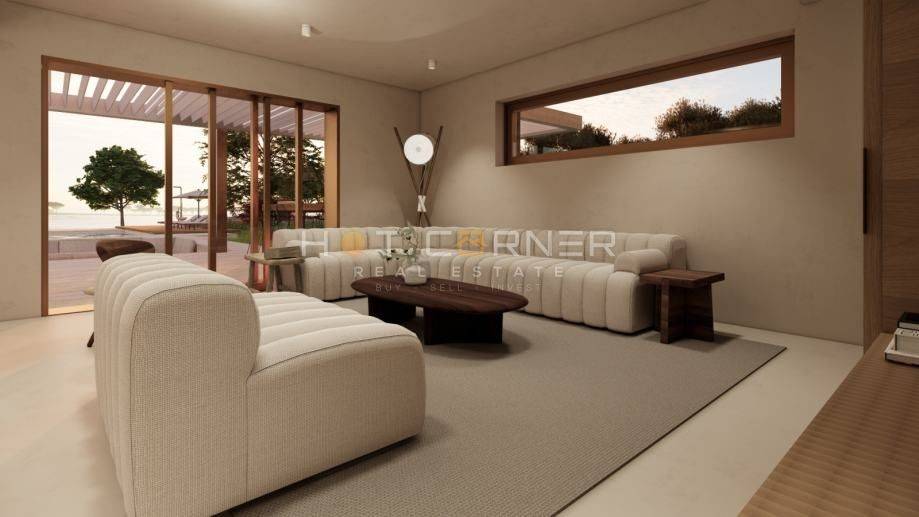 The existing villa, built in 2000, is in excellent condition. It has two floors and a total living area of 350 m², with breathtaking open sea views from the upper floor. An architectural project with a valid building permit is already in place for expanding and modernizing the property, transforming it into a modern villa with 6 bedrooms, 6 bathrooms, a rooftop terrace offering stunning panoramic sea views, and a wellness area with a sauna. The garden design also includes a secondary structure, ideal for storage, a children’s playroom, a guest room, or similar use.