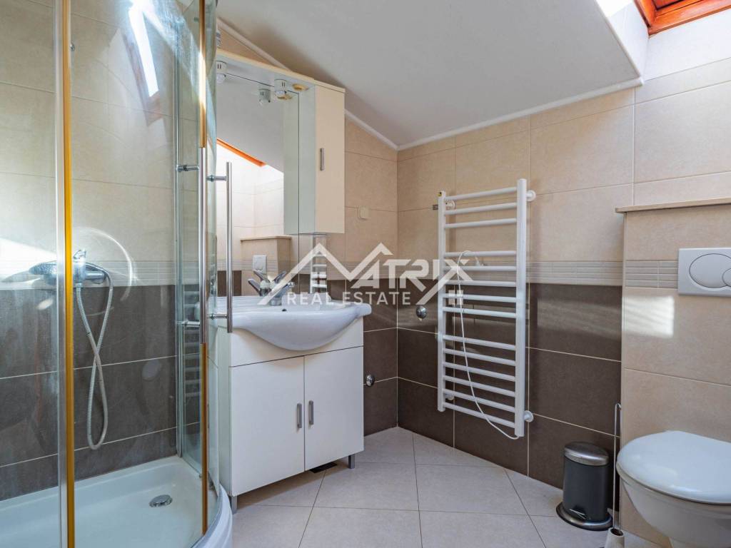 A modern two-level apartment for sale, located 3 km from Novigrad. Total area of 80.5 m². The apartment is on the first floor of a two-story building constructed in 2008, with a total of four residential units. It is in excellent condition, modern, and fully furnished. Parking is available directly in front of the building. The apartment is equipped with two air conditioning units and infrared heating panels.
