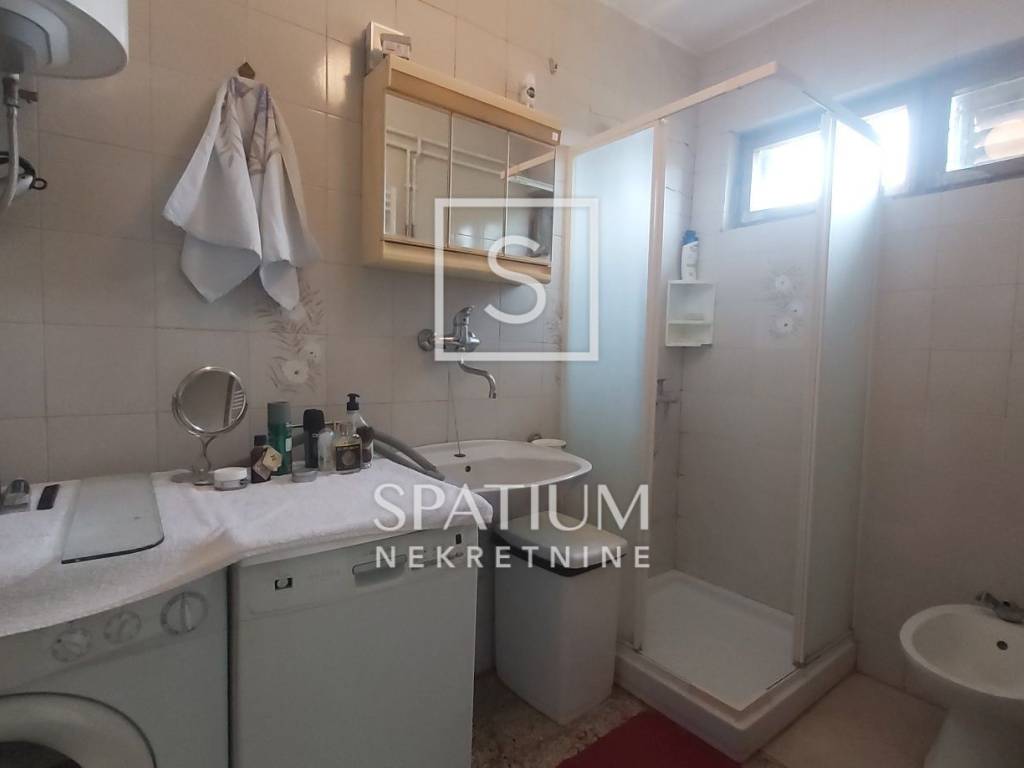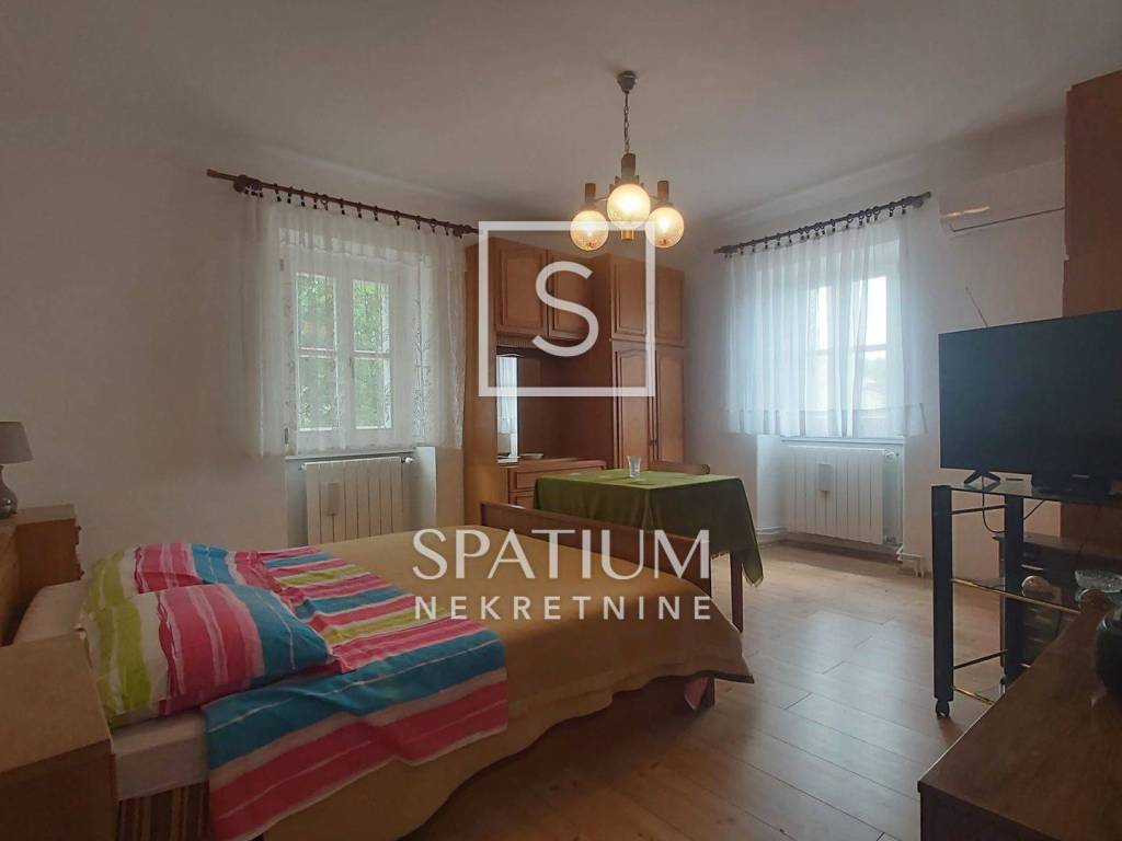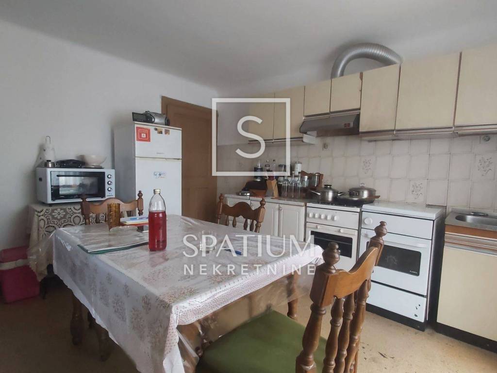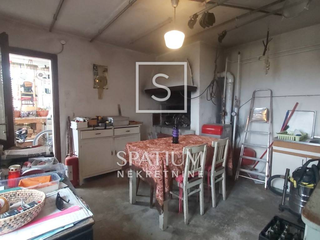 LABIN, we offer a house in a peaceful, elevated location with an open view of the town. The house spreads over two floors, with a total area of 142 m². The ground floor consists of an entrance hall, kitchen with dining area, living room, bathroom, separate toilet, storage room, tavern with fireplace, and a glazed veranda. Wooden interior stairs lead to the upper floor where there are two bedrooms and a storage space. The house features central heating on fuel oil, a newly installed roof, and PVC joinery on the upper floor. The 450 m² garden offers various possibilities for landscaping or adding additional amenities. Although partial renovation is required, the property is immediately habitable, ideal for a family seeking a home close to the town but in a quiet and natural setting.