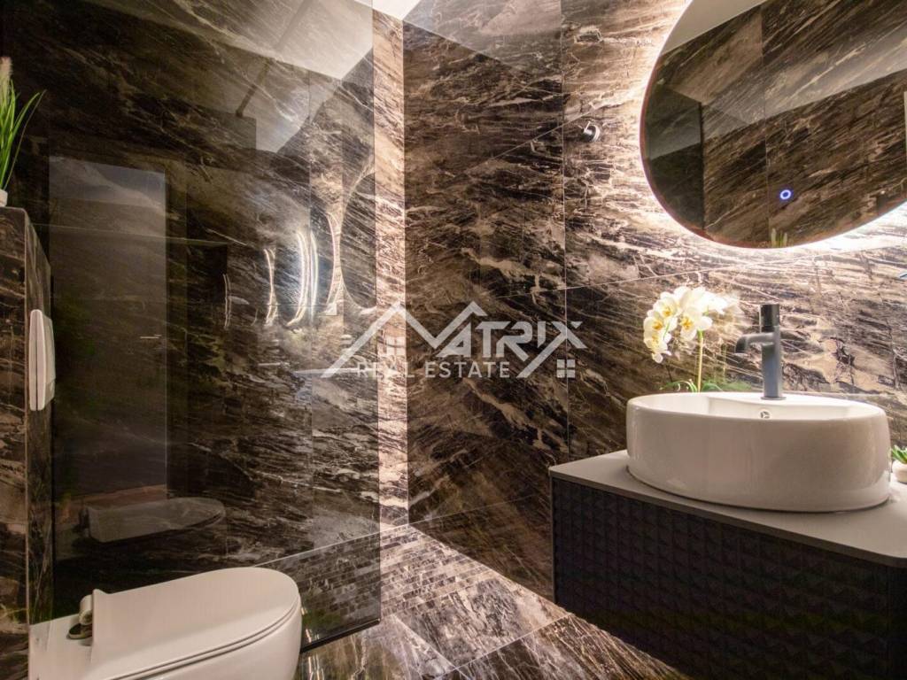 With a large infinity pool and jacuzzi, and a spacious sun deck, this is a place where relaxation turns into art. The house has four elegant bedrooms, each with its own bathroom, providing supreme comfort and privacy. In the living room connected to the modern kitchen, spaces are created for gathering and sharing special moments.