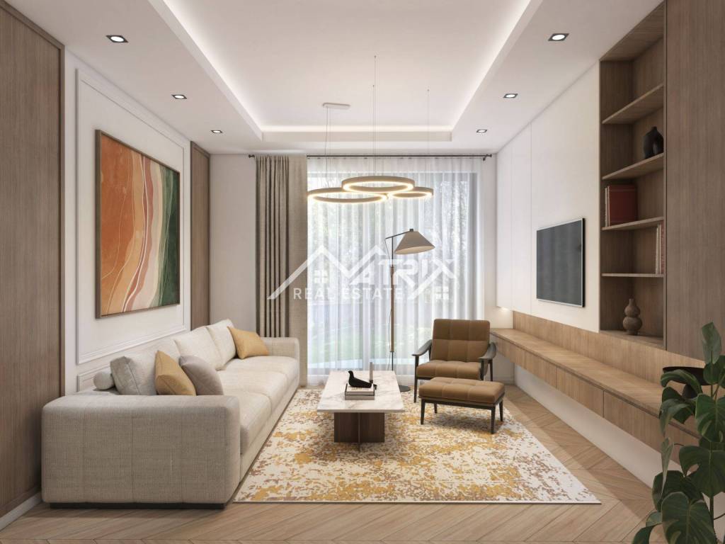 The apartment will be located on the ground floor of a new building, which will have only 8 apartments in total, which guarantees a peaceful environment and privacy. It is located on the very edge of the construction zone, which further emphasizes the exclusivity of this location.
