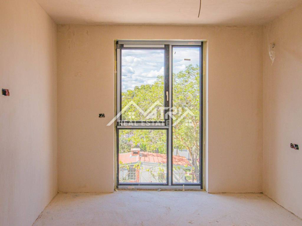 The apartment will be located on the first floor of a new building, which will have only 8 apartments in total, which guarantees a peaceful environment and privacy. It is located on the very edge of the construction zone, which further emphasizes the exclusivity of this location.