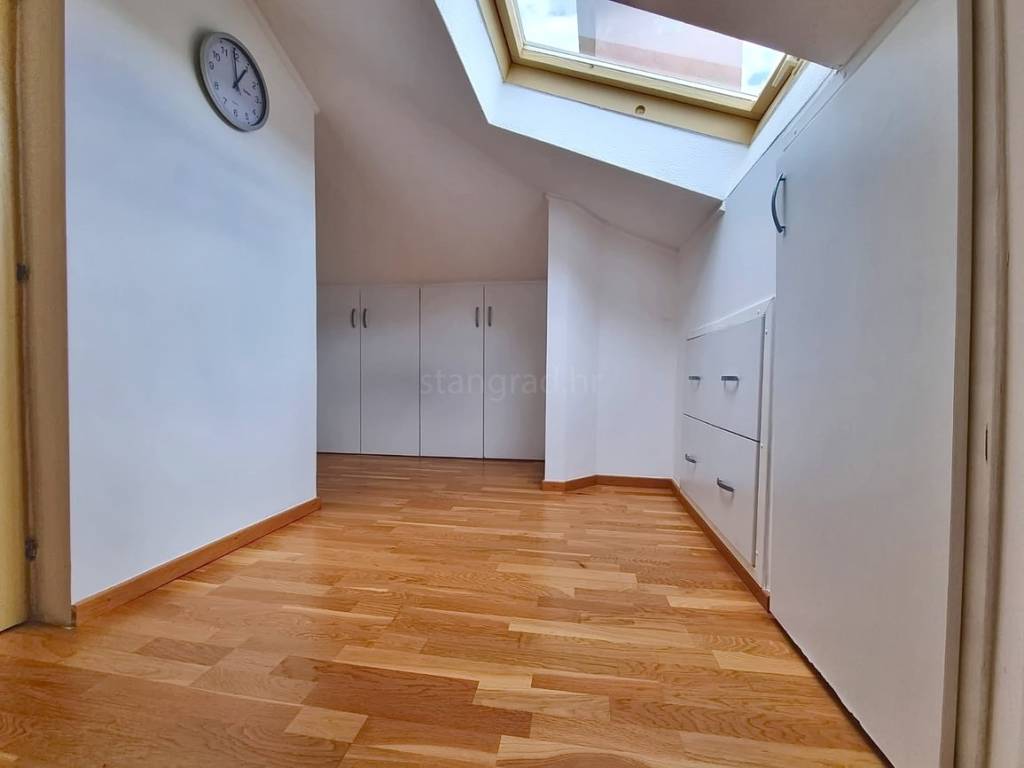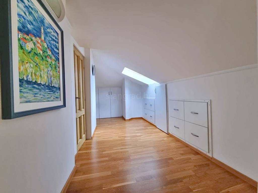 Located on the second floor of a well-built and well-maintained residential building, the apartment has a total surface area of 104 square meters. This space includes an entrance hallway, a bedroom with a built-in wardrobe, a kitchen with a dining area, and a living room. In the attic, there are two additional bedrooms, a reading corner, a bathroom, a walk-in closet with built-in wardrobes, and a covered terrace. The interior is well-maintained and equipped with a set of quality appliances and tasteful furniture.