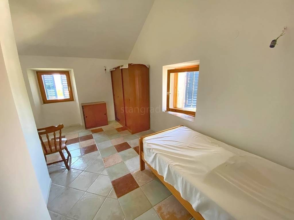The house also comes with a well-organized outdoor area, which includes a water reservoir beneath the terrace and a storage space suitable for tools or garden equipment. The property has two septic tanks, and the public sewage system is located nearby. There is a technical possibility of separating the electricity between the basement and the ground floor, allowing the house to be divided into two residential units. The yard provides comfortable parking space for two cars, and another significant advantage is the beautiful view of the sea, which enhances the sense of openness and Mediterranean charm.