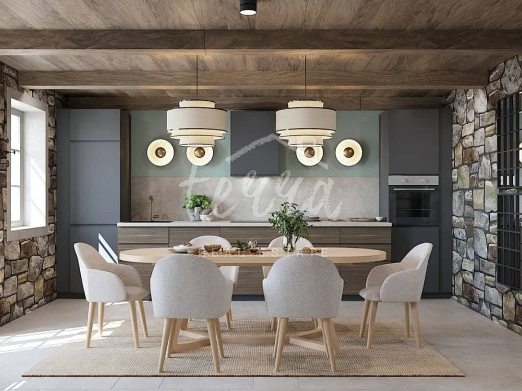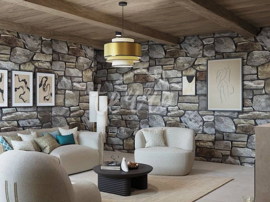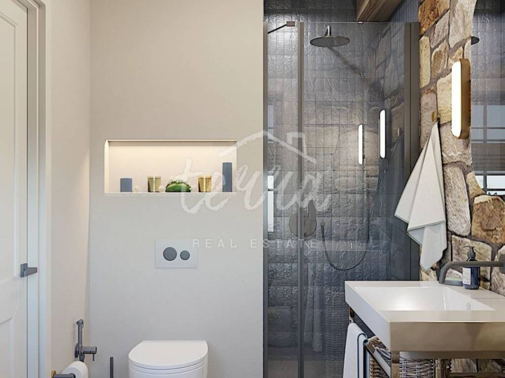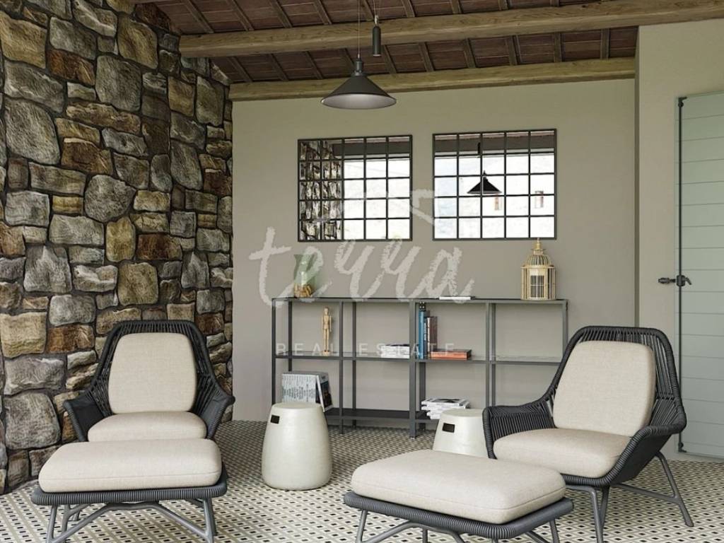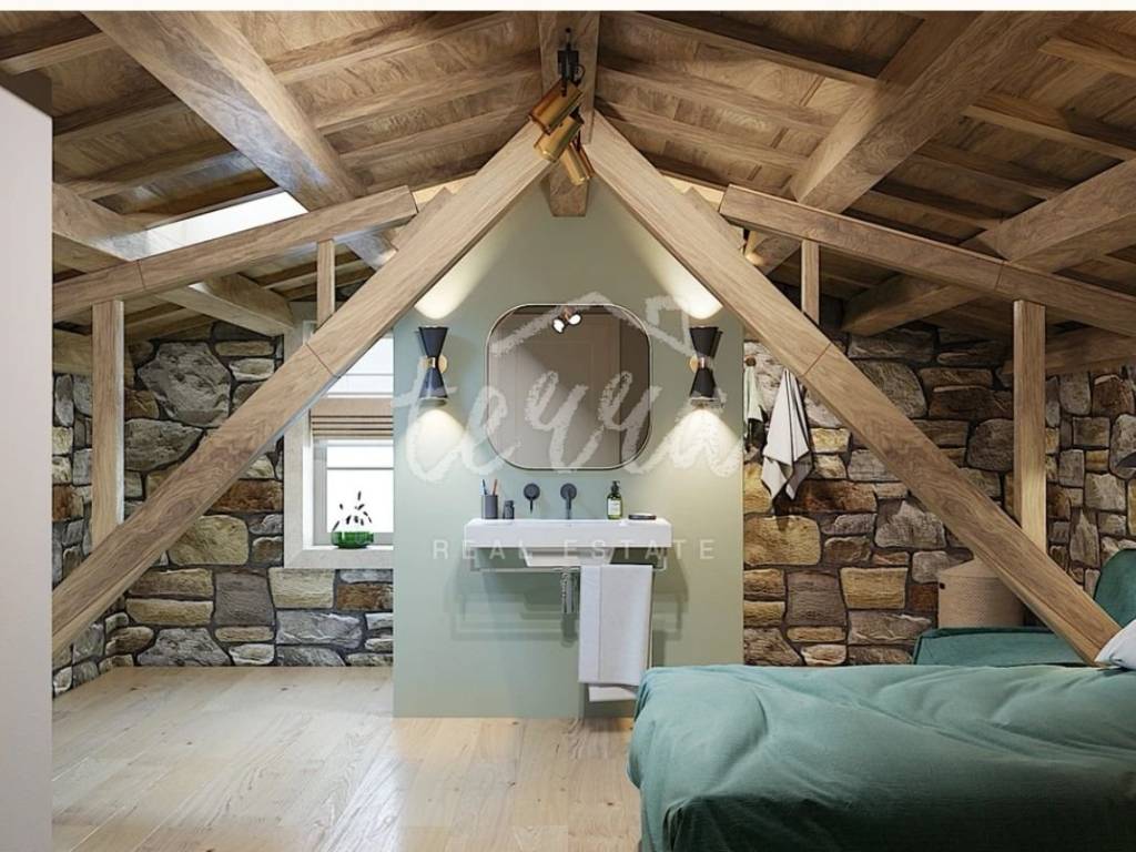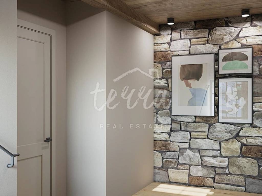 From the ground floor, internal stairs lead to the basement, which has retained its original style (stone walls) and is designed as a wine room that the future owner can decorate according to his own wishes.