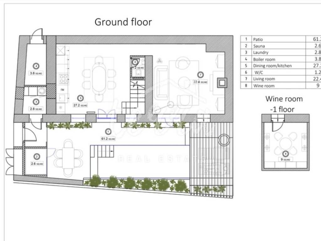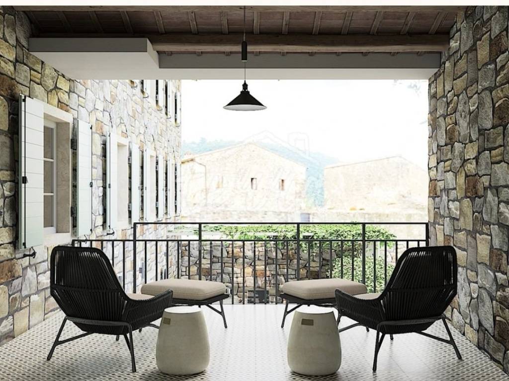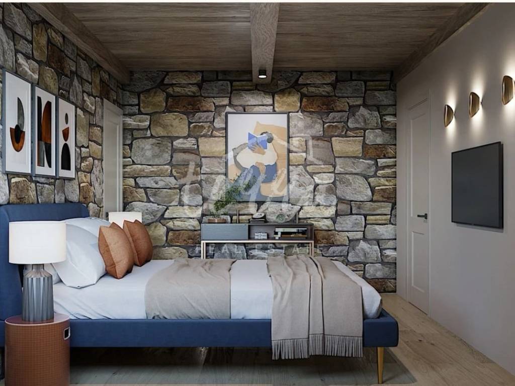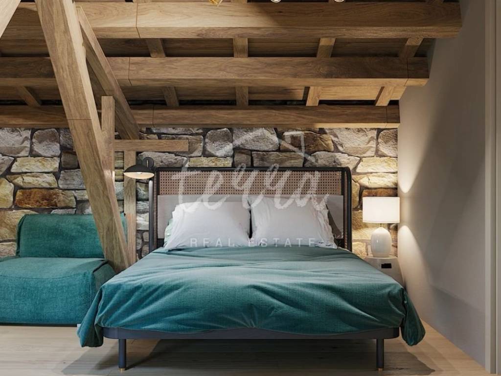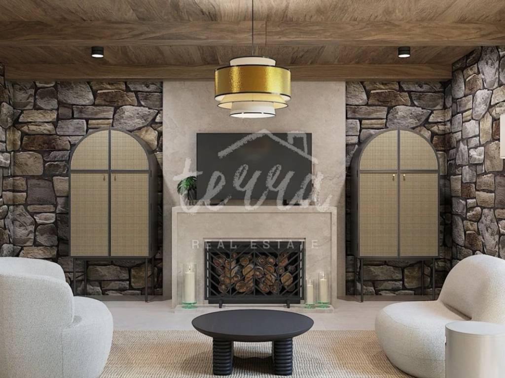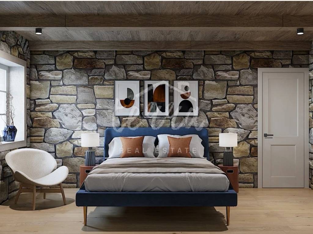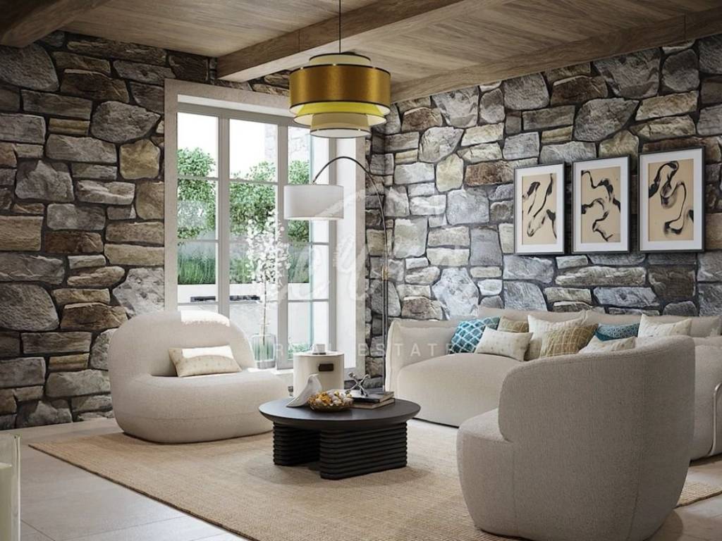 From the ground floor, internal stairs lead to the basement, which has retained its original style (stone walls) and is designed as a wine room that the future owner can decorate according to his own wishes.