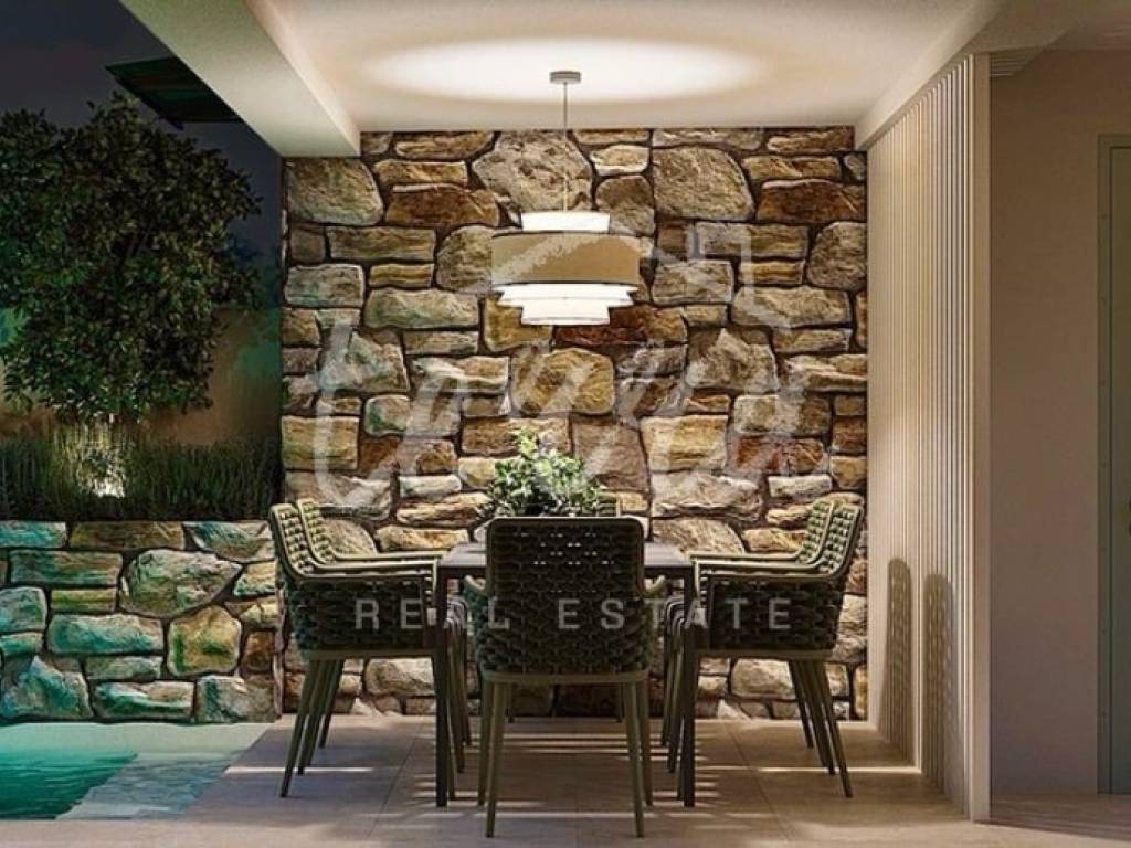 The entire garden and the ground floor are covered with autochthonous Istrian stone, the exterior joinery is wooden.