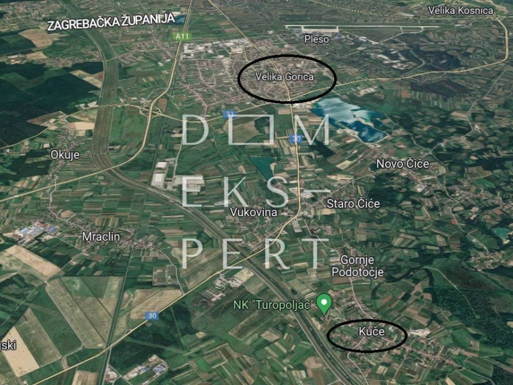 The land is located within the spatial plan coverage of Velika Gorica-III, identified as development and settlement arrangement areas and undeveloped/arranged building area of the settlement.