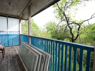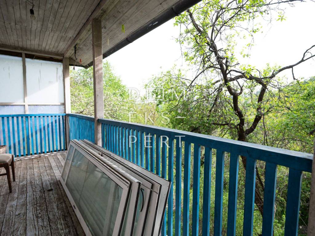 Along the side of the house, there is a built-in cistern for collecting rainwater. The property is not connected to the electricity or water network. Water pipes and drainage need to be installed throughout the house; for sewage, a septic tank is used. Heating is planned via a wood-burning stove. The roof is covered with asbestos cement panels, and the exterior joinery is wooden.