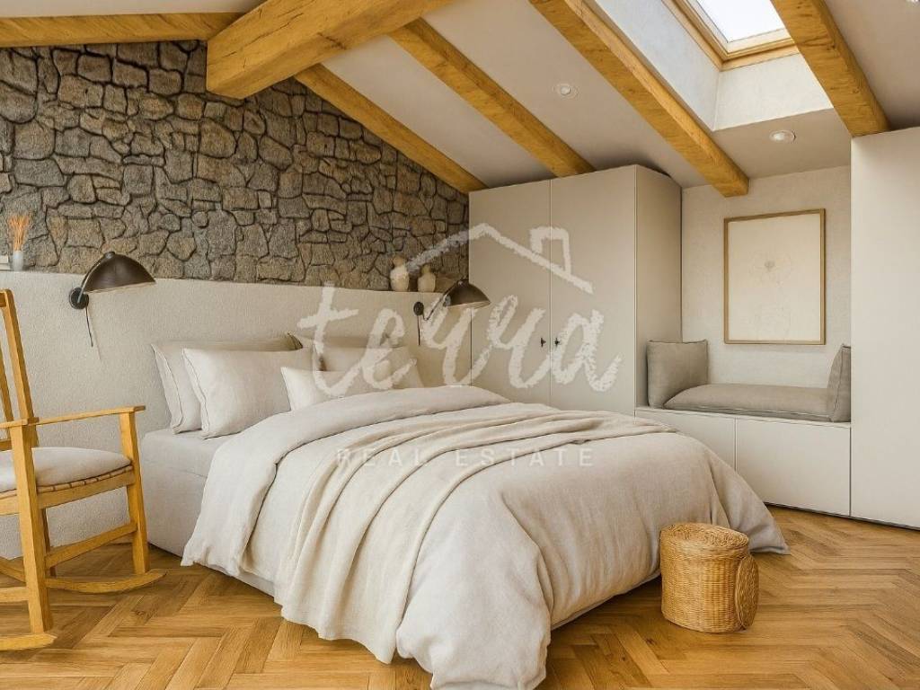 This beautiful, fully equipped and renovated Istrian stone house is for sale. Surrounded by greenery in an idyllic location with panoramic views. The house has an area of 90m2 (two floors of 45m2 each) + an auxiliary building of 35m2 on a plot of 800m2. It consists of: - a modernly decorated ground floor with a kitchen and dining room, living room, a bathroom and a storage room - two spacious bedrooms and a bathroom on the first floor The rooms have parquet flooring. The house is air-conditioned and there is also the option of installing a wood-burning stove (chimney on the ground floor) Parking in front. Ideal for a quiet family life or as an investment in tourism, close to the town of Labin and all the amenities it offers for everyday life and tourist attractions and the sea.