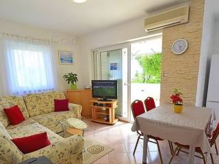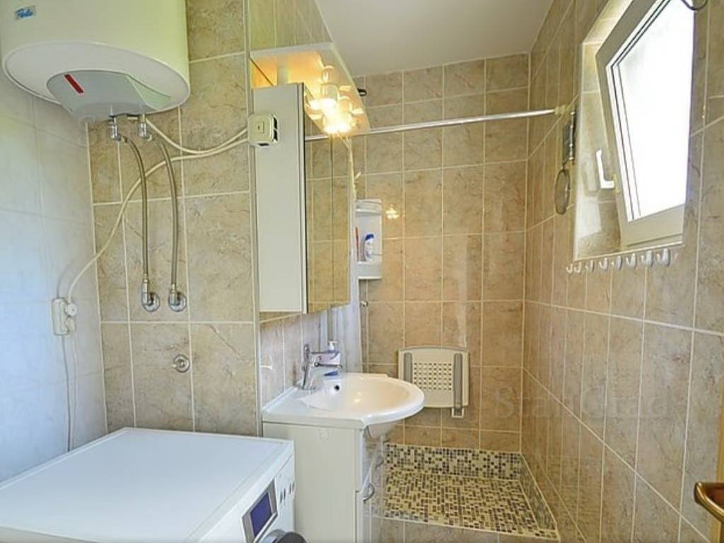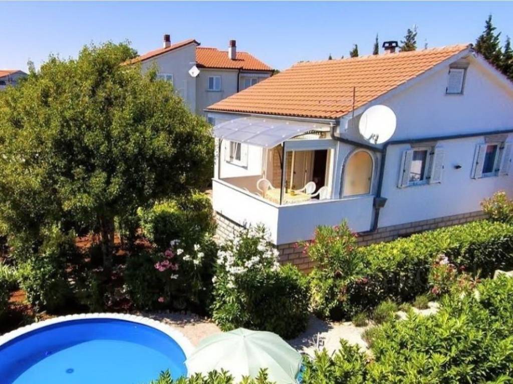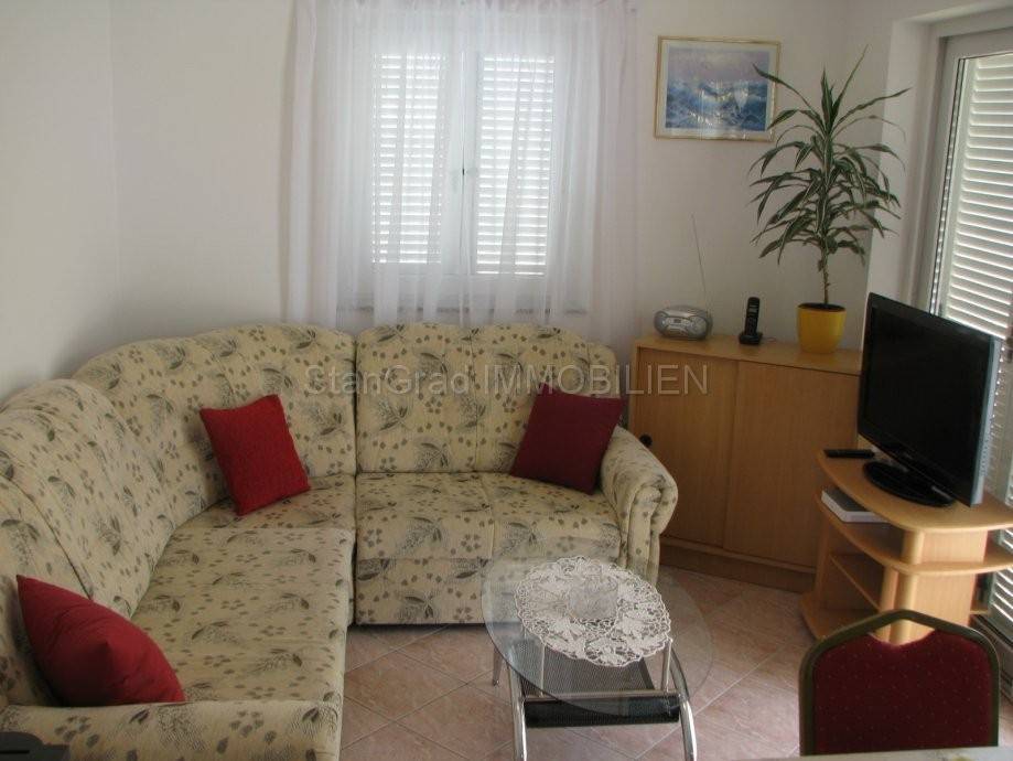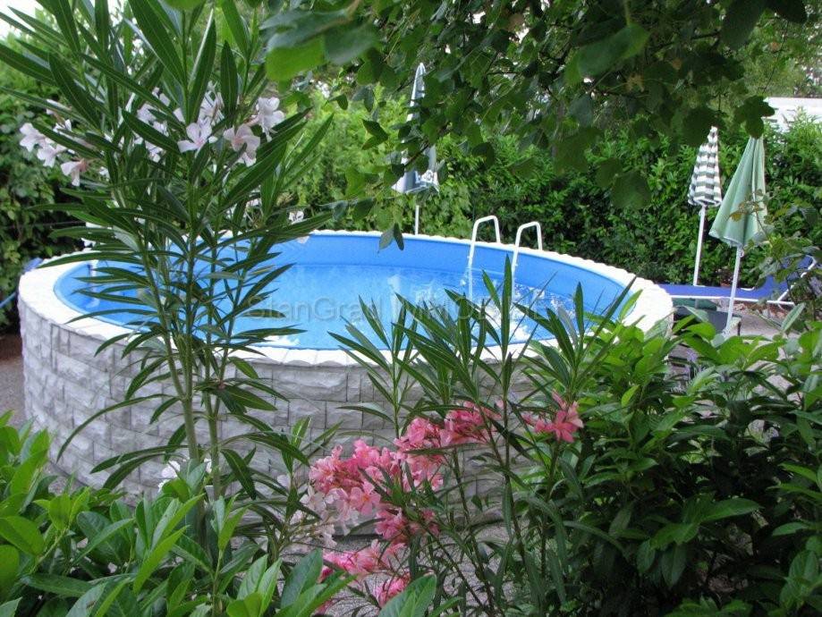 Island Krk, Pinezici. Real estates agency Stan Grad Immobilien offers a detached house with swimming pool. High ground floor house is from the sea and Blue Flag marked beach about 800m away. House of 100m2 contains two independent units, two bedroom apartments with living room, kitchen with dining area, two bedrooms and bathroom. The garden of the house is nicely decorated and enriched with 600 square meters of Mediterranean vegetation and beautiful greenery. On the plot of the house there is a stone pool with sundeck for 6 sun lounger chairs. With two large fireplaces in the garden of the property there is also a gazebo area of 20m2 with table and benches for 15 people. The house has a cellar and parking plot for 5 cars with a covered garage. Property owner guarantees the rapid transfer of rights to the buyer and the real estates agency Stan Grad Immobilien will help you with ownership and utilities transfer.