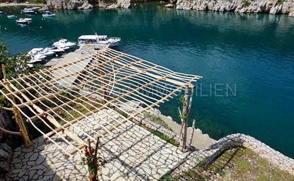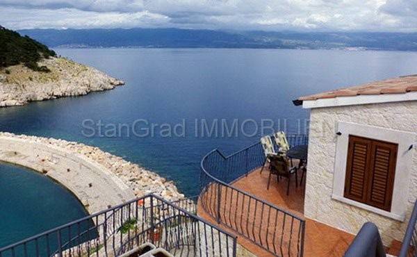 Island Krk - Vrbnik. Real estates agency Stan Grad Immobilien is offering a detached house for sale. Renovated stone house is situated on a cliff above the sea and about 20m away from the beach. The house has a living room, kitchen, three bedrooms, three bathrooms with toilet and another toilet. In front of each bedroom is a terrace with fantastic view of the sea and Kvarner bay. The property is formed in cascades. On the infield of the house there is a space inteded for building a pool. The house is fully furnished. In front of the house there are private stairs leading directly to the beach. Ownership documentation is clear and real estates agency Stan Grad Immobilien will help you with the utilities transfer.