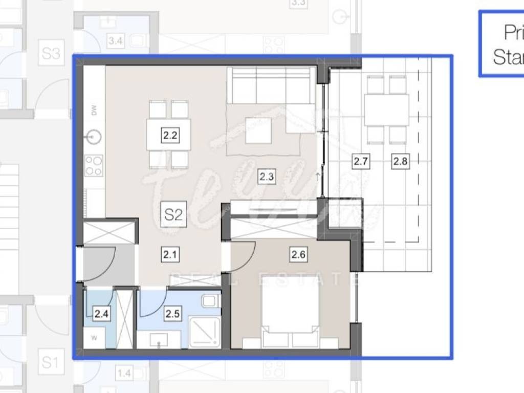 A one-bedroom apartment on the ground floor of a new, modern Villa is for sale.