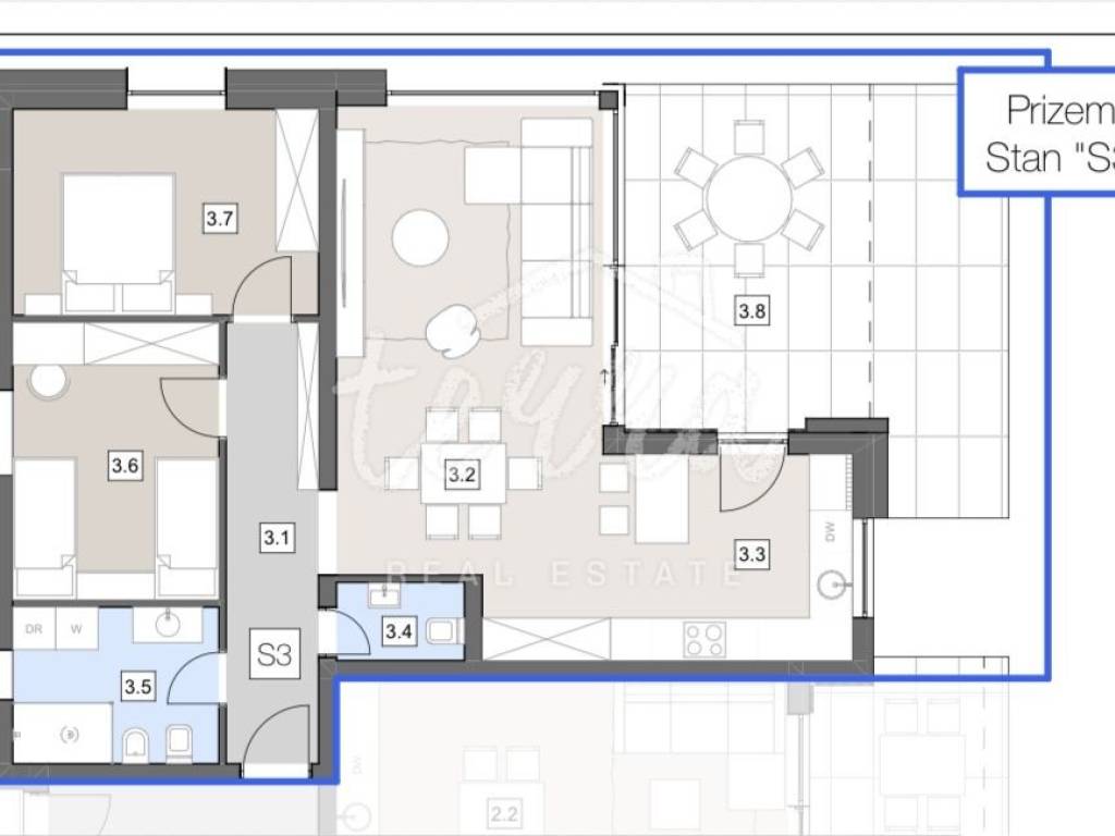 LABIN, TWO-BEDROOM APARTMENT ON THE GROUND FLOOR OF A MODERN VILLA