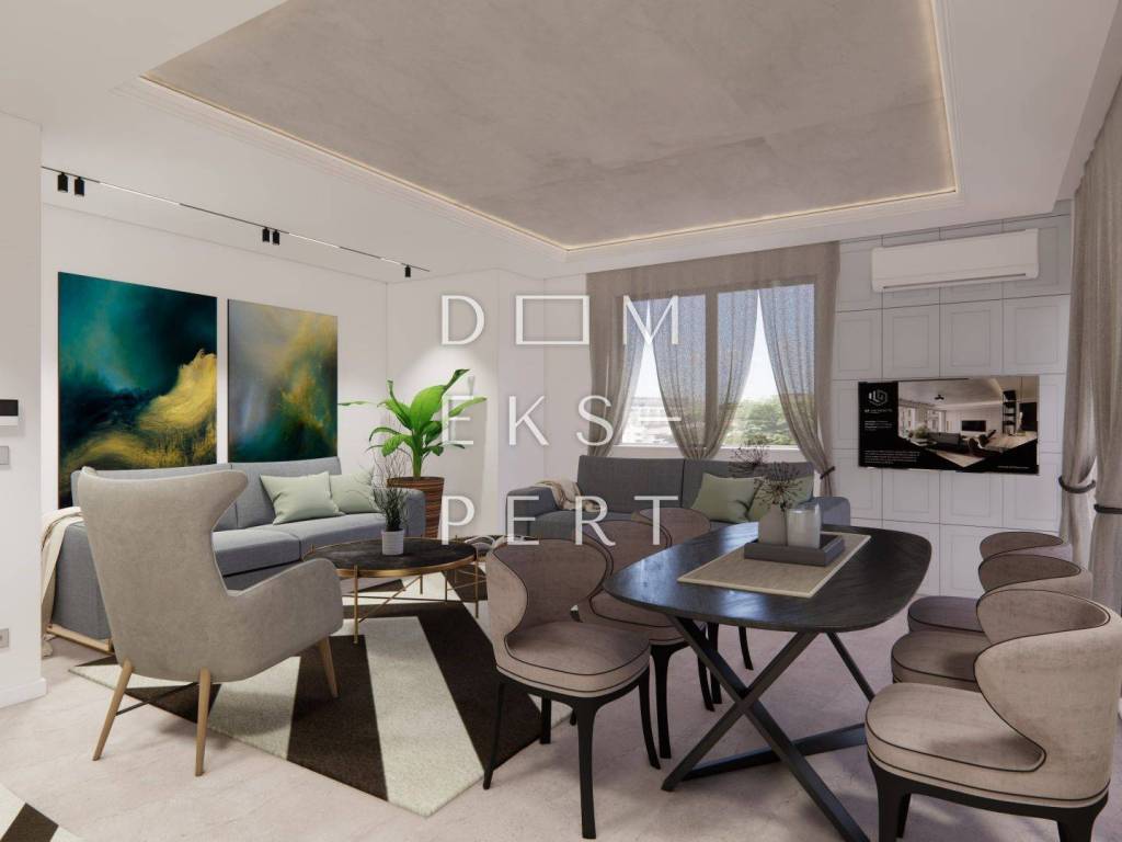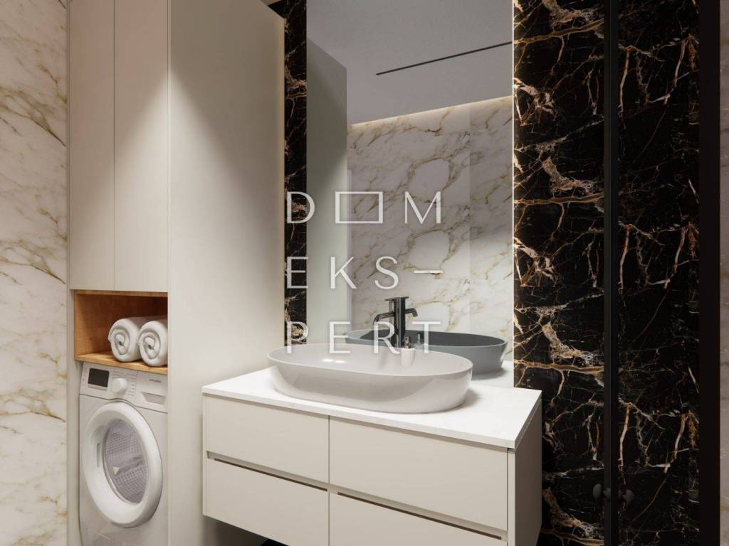The apartment is oriented to the west, east, and south, ensuring an abundance of natural daylight through large glass walls. The spacious terrace with sea views offers the perfect outdoor relaxation area.