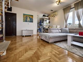 A spacious and fully furnished three-bedroom duplex apartment is for sale in the quiet and well-connected neighborhood of Gajnice. The apartment is situated on the first floor of a small residential building without an elevator and is oriented southeast and northeast.