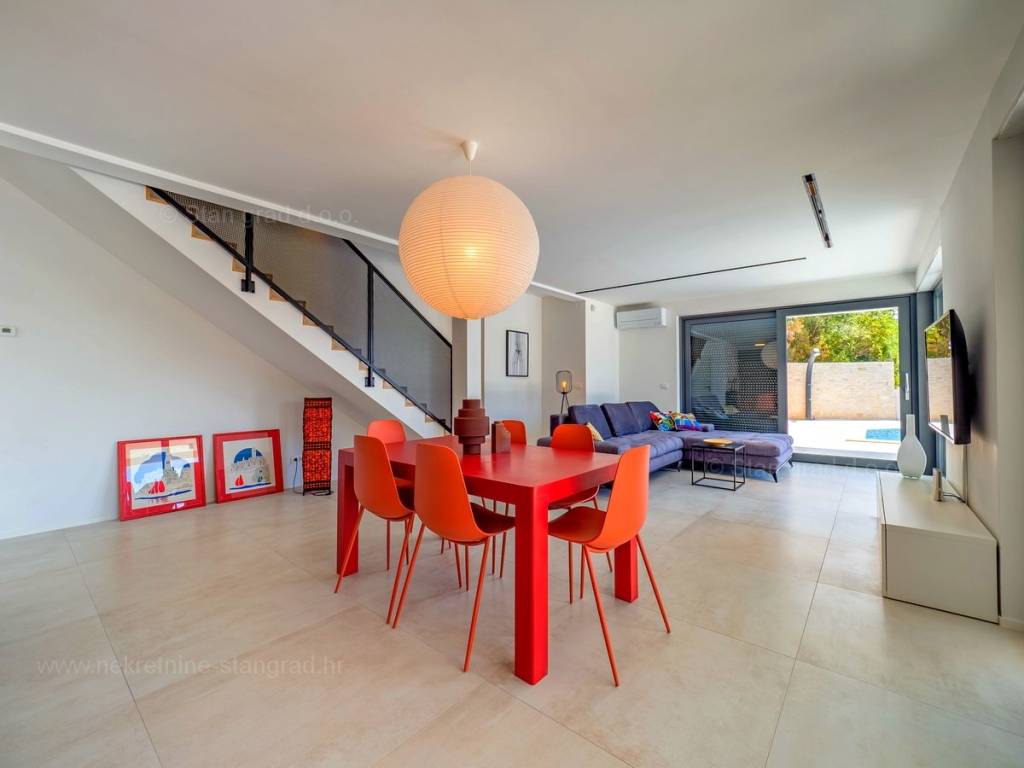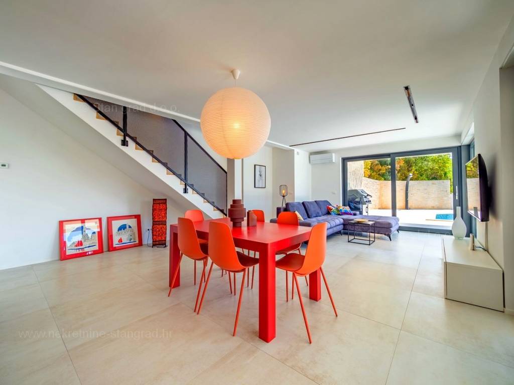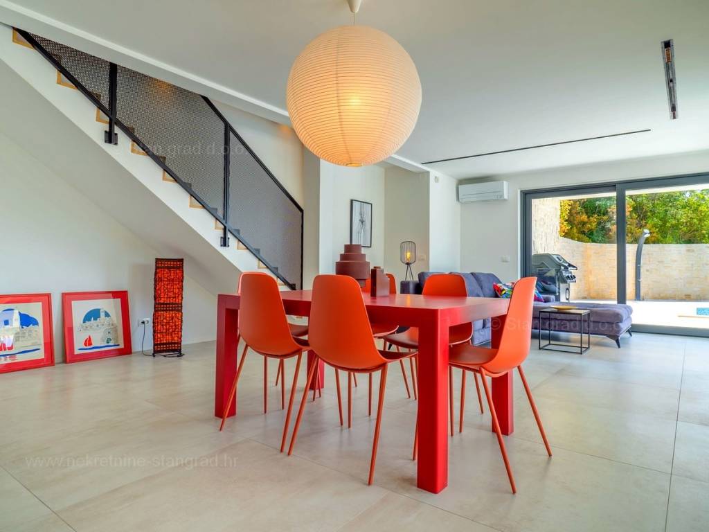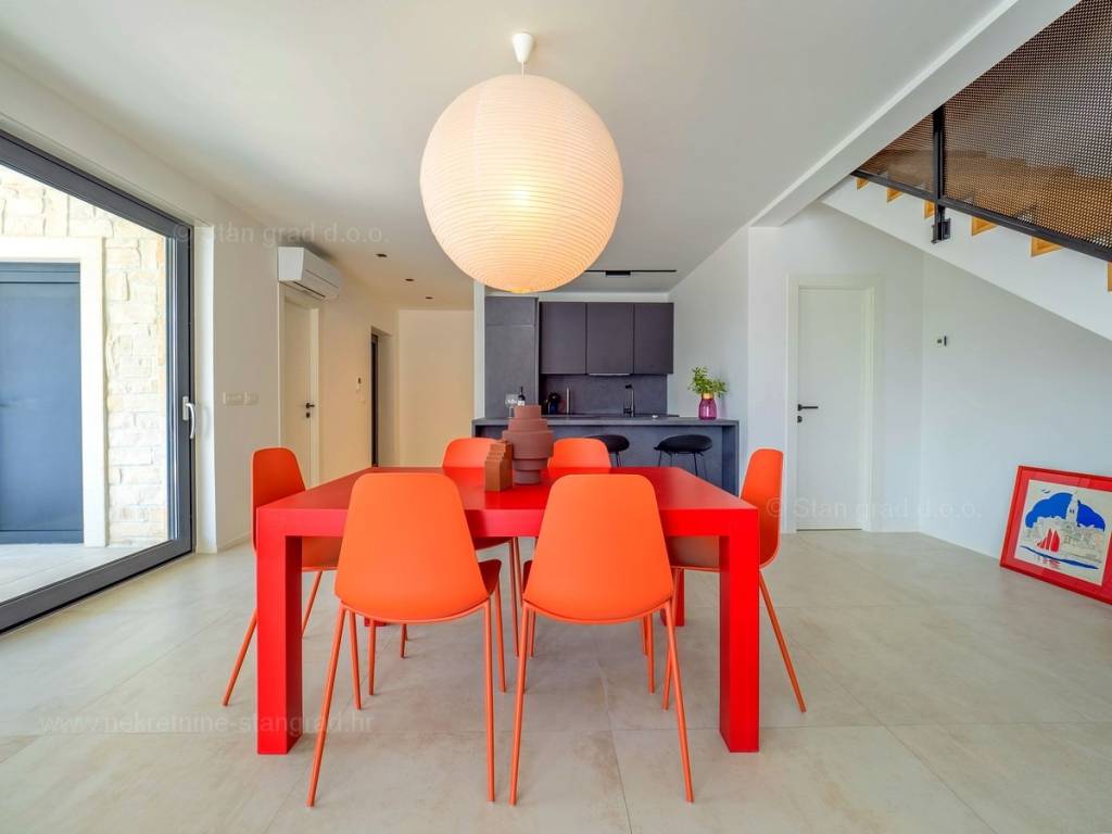 From the real estate offer of the Stan Grad Immobilien agency in the advanced Kvarner area, a romantic tourist house in an attractive tourist destination and the pearl of the Adriatic, the island of Krk, has been singled out. The property is located near the town of Vrbnik, in a location that offers enjoyment in the greenery of nature. According to the type of building, the building can be categorized as a single-story house. The very beautiful building is built on 2 usable floors. The total area of ​​this house is 179 m2. This area includes on the ground floor a toilet, living room, kitchen with dining room and a spacious terrace, and on the first floor there are 3 bedrooms, each with its own bathroom and terrace. The interior of the property is particularly well maintained and fully equipped with the necessary technical devices and high-quality furniture. The special charm of this property is given by the exceptionally landscaped garden, which includes a swimming pool and a sunbathing area. Two cars can be comfortably parked in the garden of the described property. In addition to the above, it should be emphasized that the house has a beautiful view of the sea. The house in question is owned by a physical obligation and upon transfer of ownership is subject to the calculation of real estate transfer tax in the amount of 3%. The seller of the house guarantees proper ownership documentation and a quick transfer of property ownership. Visit us and experience the feeling of satisfaction and security when buying real estate in Kvarner. In addition to the professional presentation of the natural and legal condition of the property, if you decide to buy, the Stan Grad Immobilien agency will be happy to assist you in the transfer of ownership of the property.