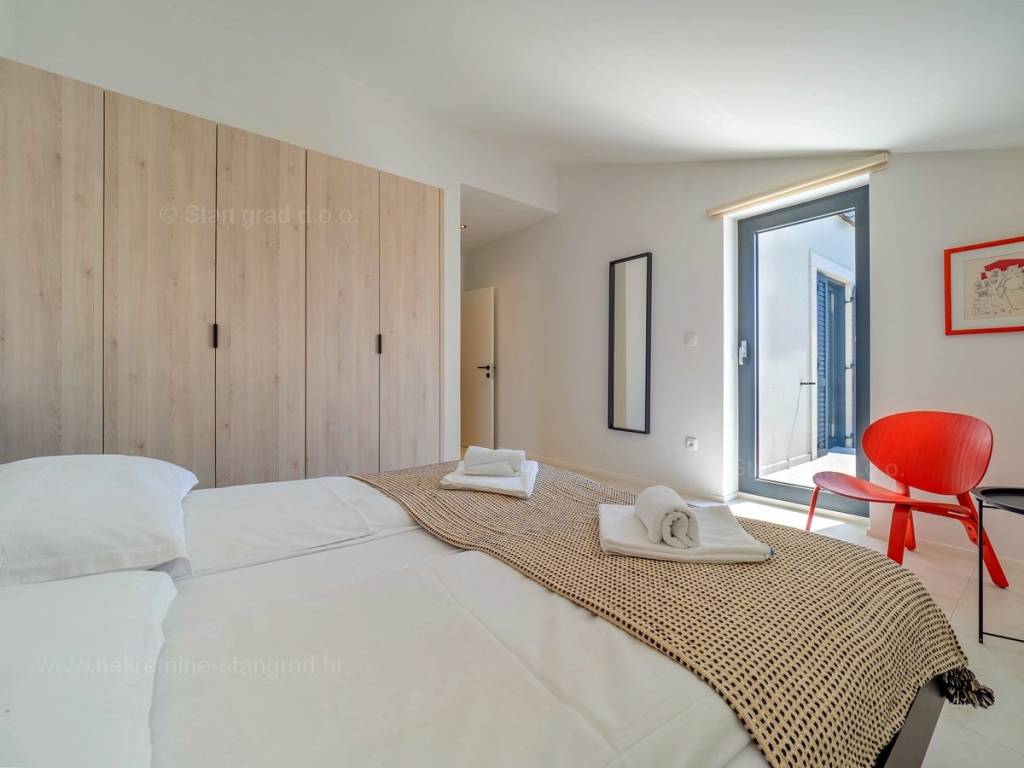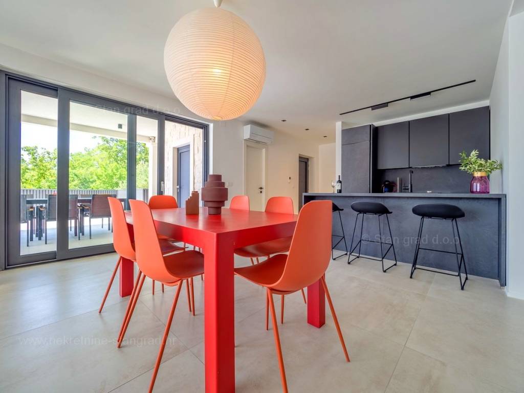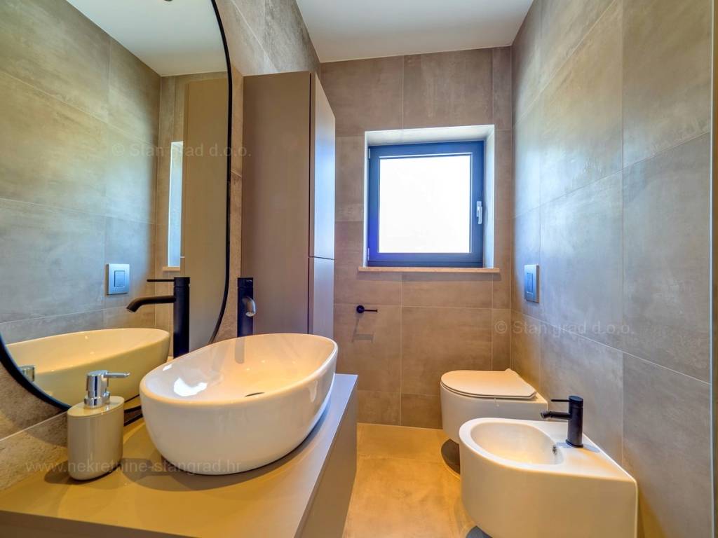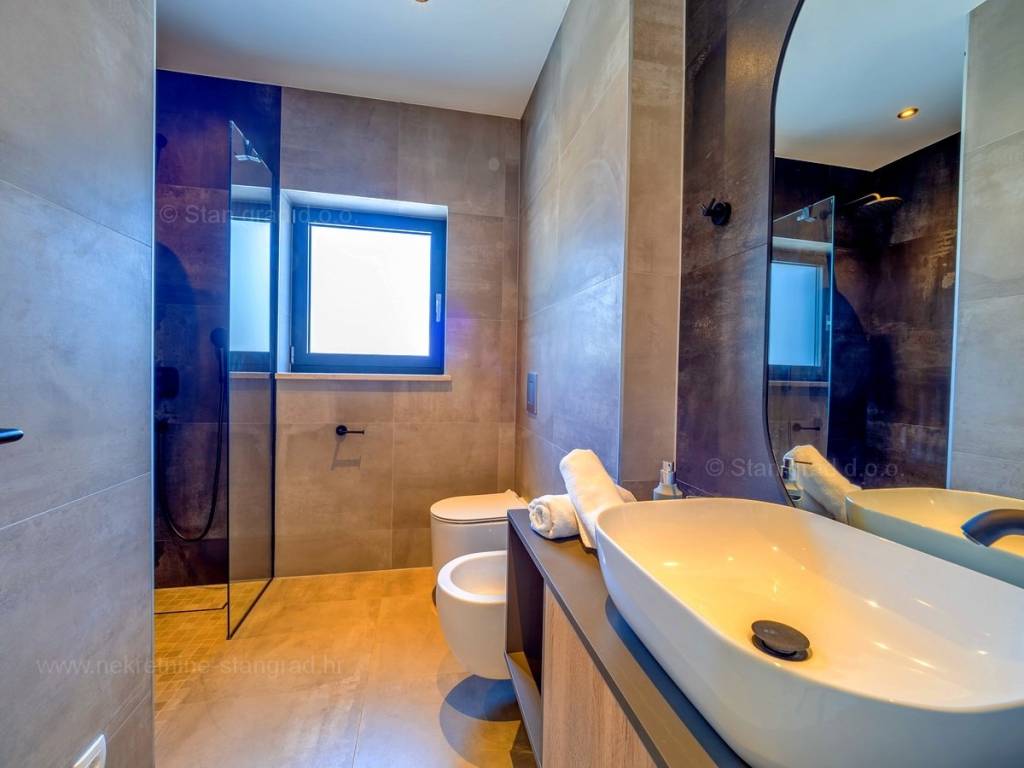 From the real estate offer of the Stan Grad Immobilien agency in the advanced Kvarner area, a romantic tourist house in an attractive tourist destination and the pearl of the Adriatic, the island of Krk, has been singled out. The property is located near the town of Vrbnik, in a location that offers enjoyment in the greenery of nature. According to the type of building, the building can be categorized as a single-story house. The very beautiful building is built on 2 usable floors. The total area of ​​this house is 179 m2. This area includes on the ground floor a toilet, living room, kitchen with dining room and a spacious terrace, and on the first floor there are 3 bedrooms, each with its own bathroom and terrace. The interior of the property is particularly well maintained and fully equipped with the necessary technical devices and high-quality furniture. The special charm of this property is given by the exceptionally landscaped garden, which includes a swimming pool and a sunbathing area. Two cars can be comfortably parked in the garden of the described property. In addition to the above, it should be emphasized that the house has a beautiful view of the sea. The house in question is owned by a physical obligation and upon transfer of ownership is subject to the calculation of real estate transfer tax in the amount of 3%. The seller of the house guarantees proper ownership documentation and a quick transfer of property ownership. Visit us and experience the feeling of satisfaction and security when buying real estate in Kvarner. In addition to the professional presentation of the natural and legal condition of the property, if you decide to buy, the Stan Grad Immobilien agency will be happy to assist you in the transfer of ownership of the property.