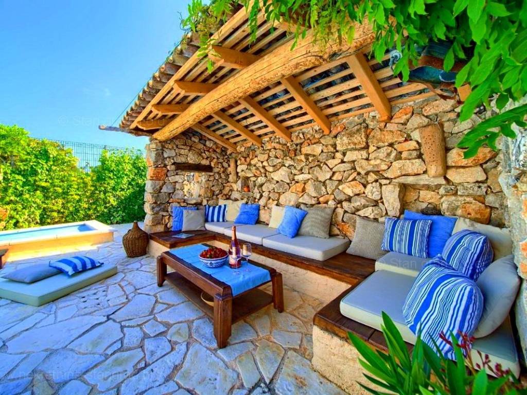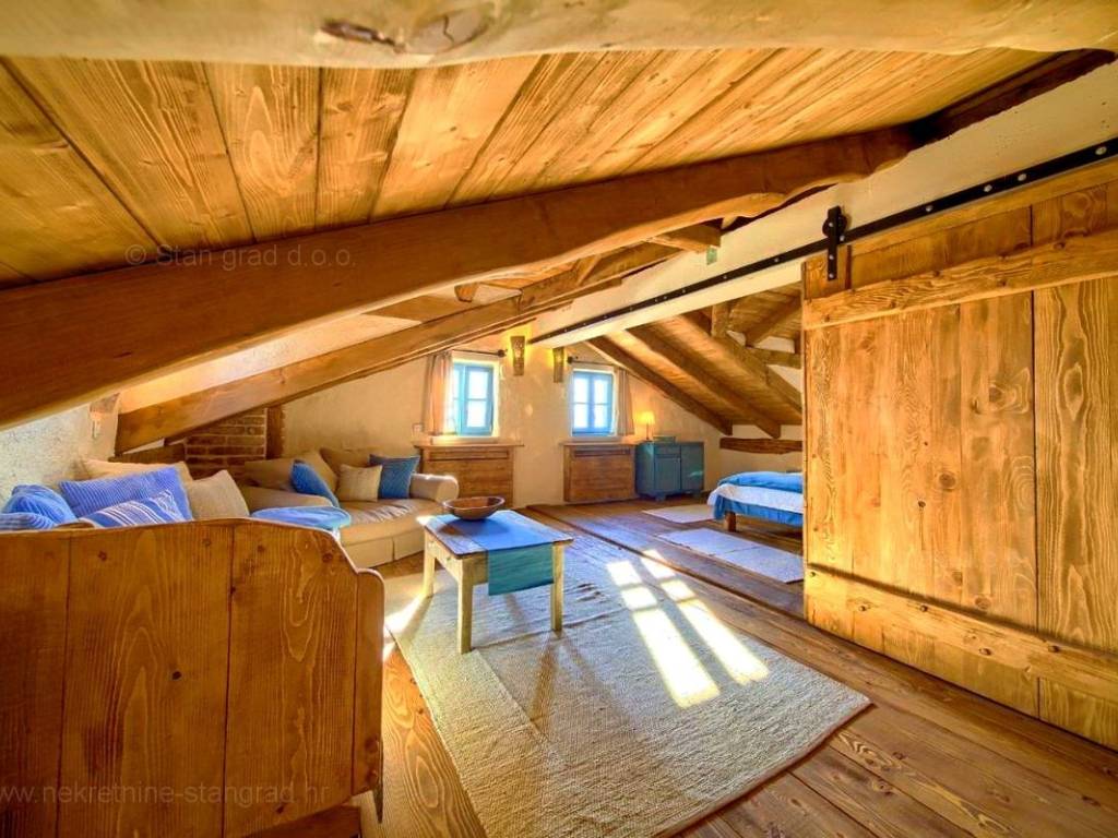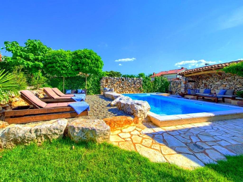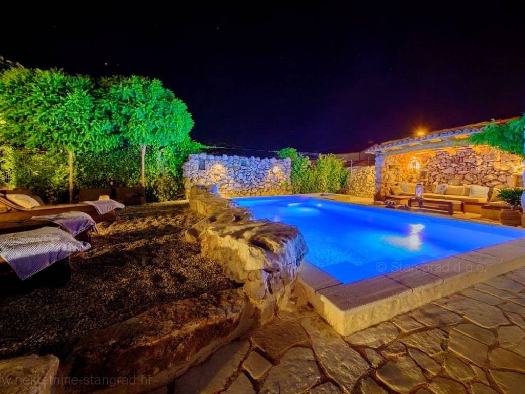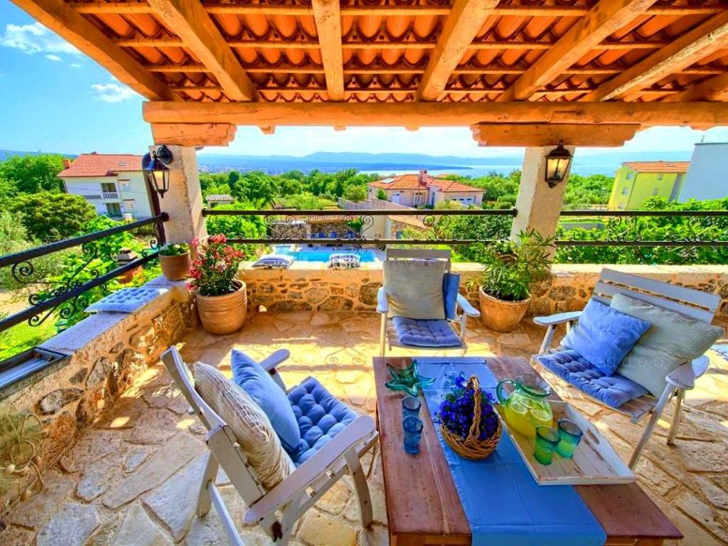 From the wide range of properties available on the northern Adriatic, Stan Grad Immobilien offers a stunning coastal villa in the attractive tourist region of the island of Krk. This rustic stone house is located in the vicinity of the well-known town of Malinska, in a peaceful location away from city noise. In terms of building type, this house can be classified as a semi-detached house with a basement, ground floor, first floor, and high attic.