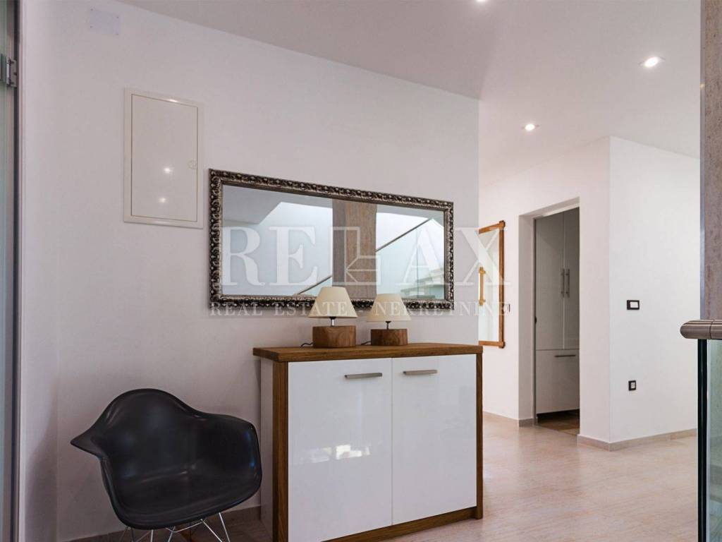 An internal staircase leads to the first floor where there are three large spacious bedrooms, each with its own exit to the balcony, three bathrooms, a boiler room and a sauna.