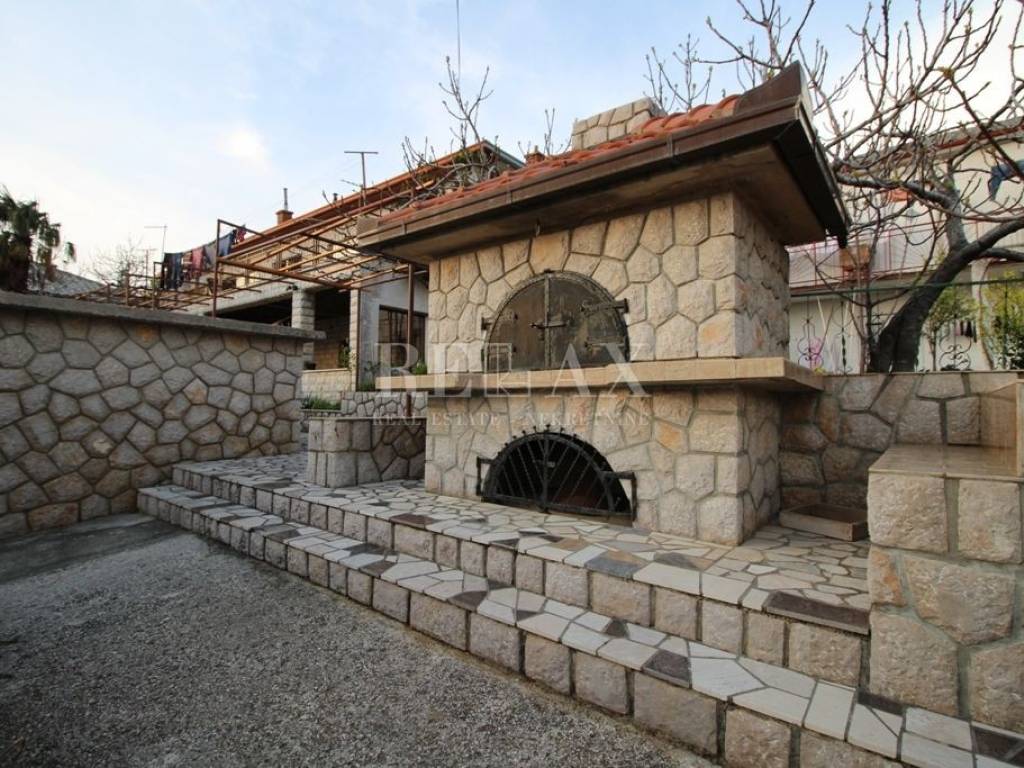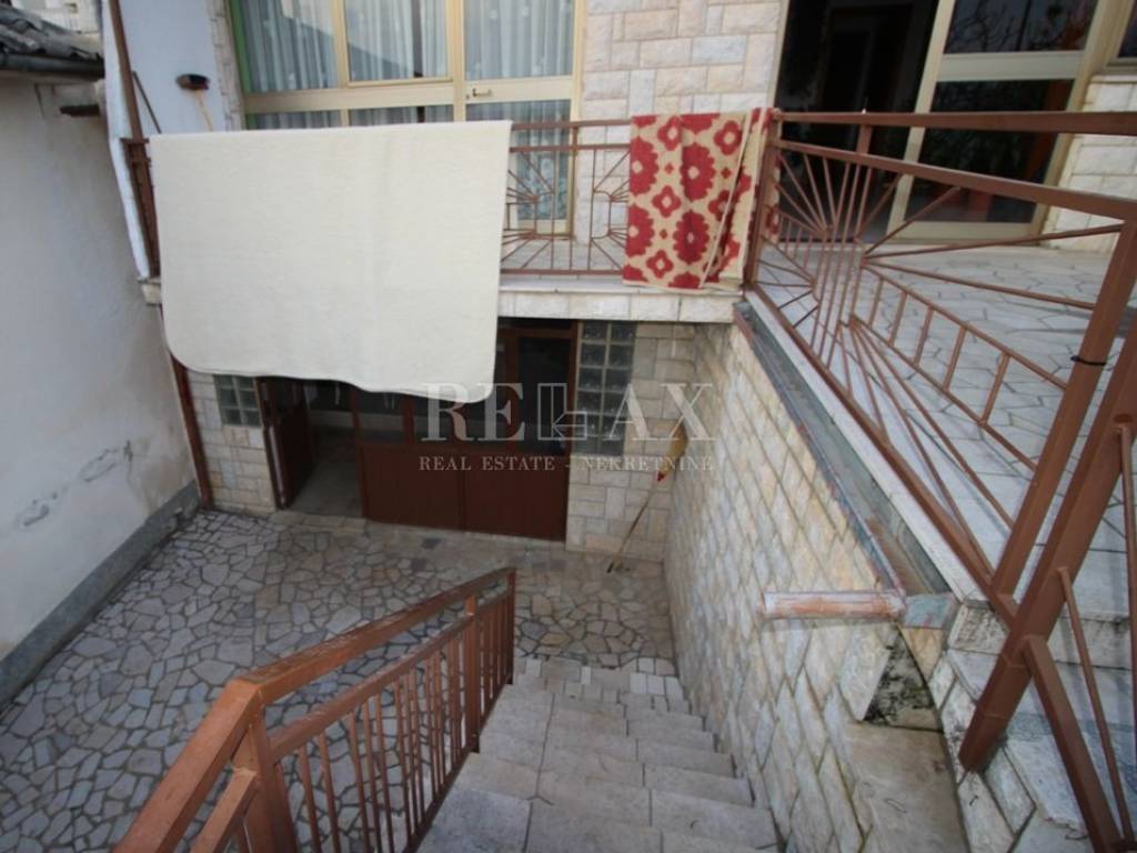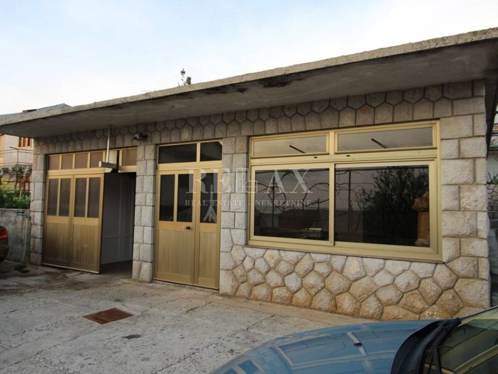 An external staircase leads to the first floor where there is an apartment consisting of a living room, kitchen with dining area, hallway, three bathrooms, six bedrooms and a balcony with a beautiful sea view.