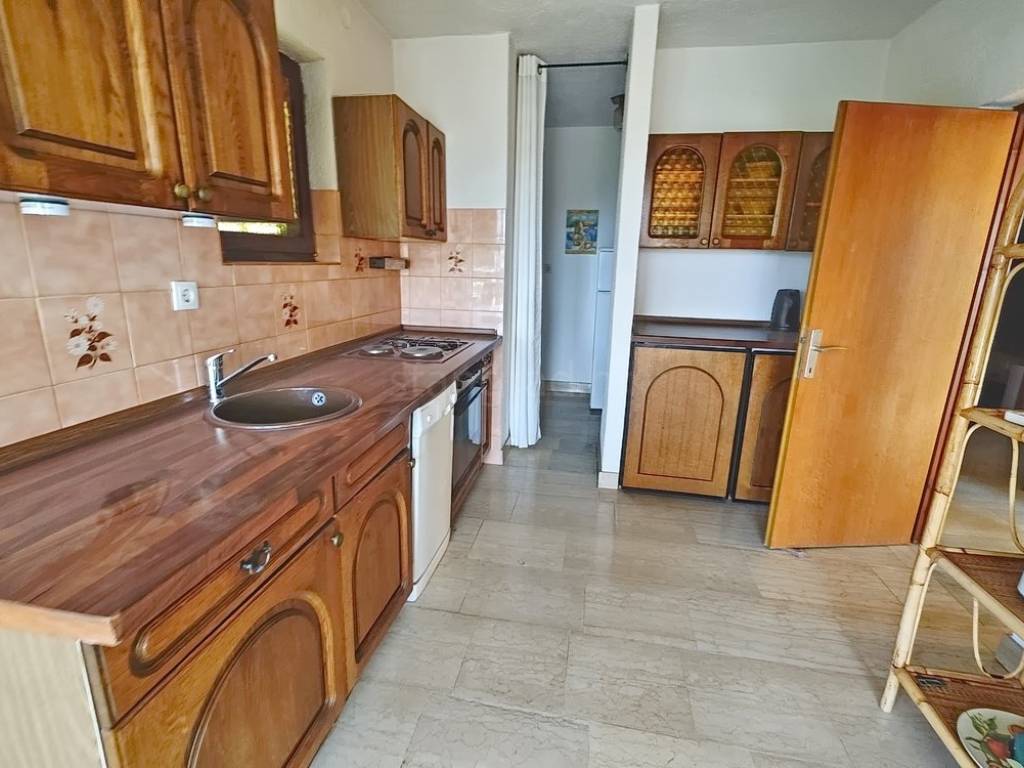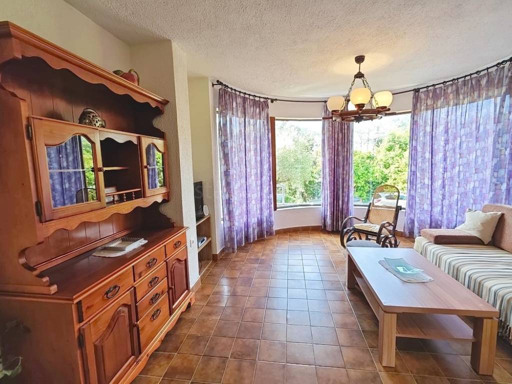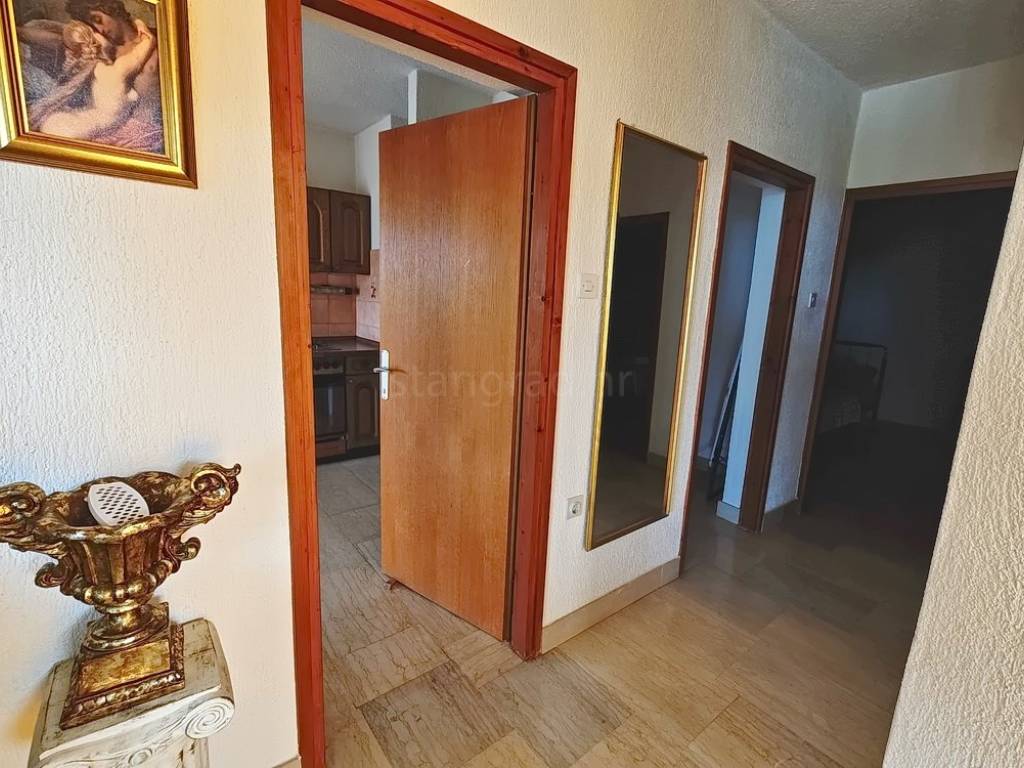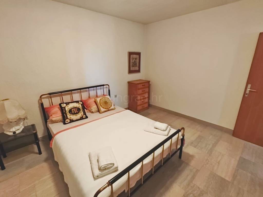 It is important to note that the apartment on the first floor occupies the entire level and consists of an entrance hallway, two bedrooms, a living room, a kitchen with a dining area, and a large terrace with a sea view. The interior spaces of the property are exceptionally well-maintained and fully equipped with necessary technical appliances and high-quality furnishings.