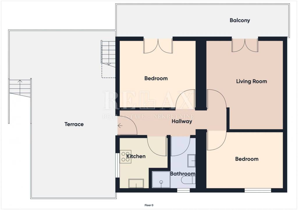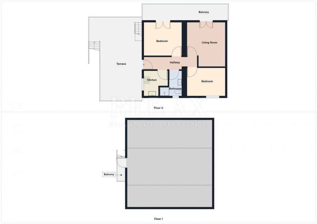 We take the stairs to the first floor to a large terrace where the entrance to the apartment consists of an entrance hall, two bedrooms, a bathroom, a kitchen, a dining room with a living room from which you can go out to a balcony with a beautiful view of the sea.