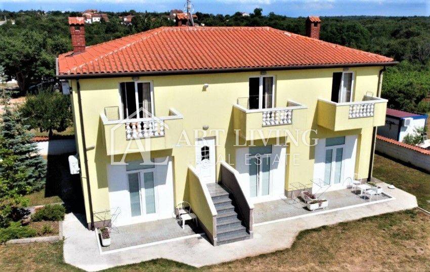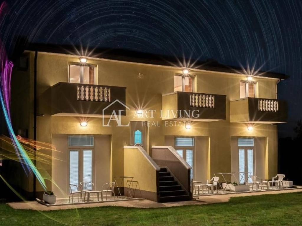 For sale is a business building with an apartment and an apartment house in a quiet settlement, only 5 km from the town of Umag and the sea, 6 km from the golf course and 5 km from the border crossing with Slovenia.