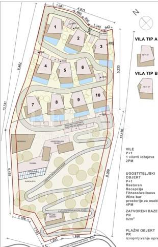 The land is located only 15 m from the sea and has the possibility to build 10 villas with swimming pool, restaurant, wellness, indoor pool, possibility of moorings and 20% capacity of accommodation units.