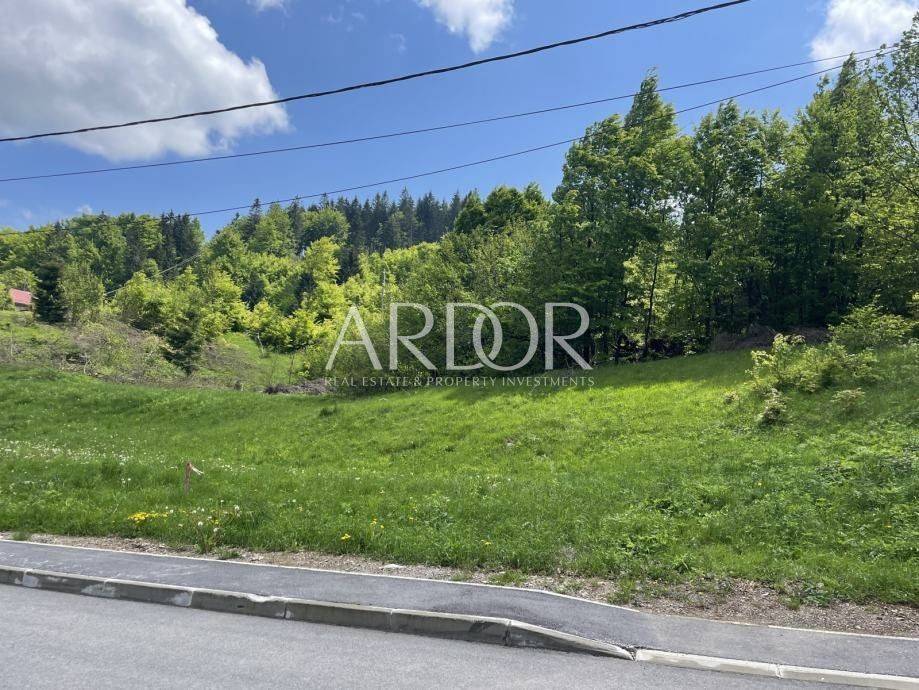 A building plot of 900 m² is for sale in a quiet part of Delnice. The plot includes a project for the construction of a family house or a holiday home with a swimming pool.