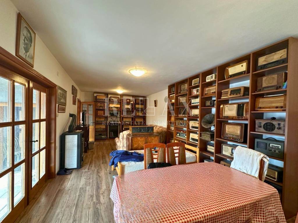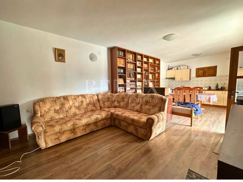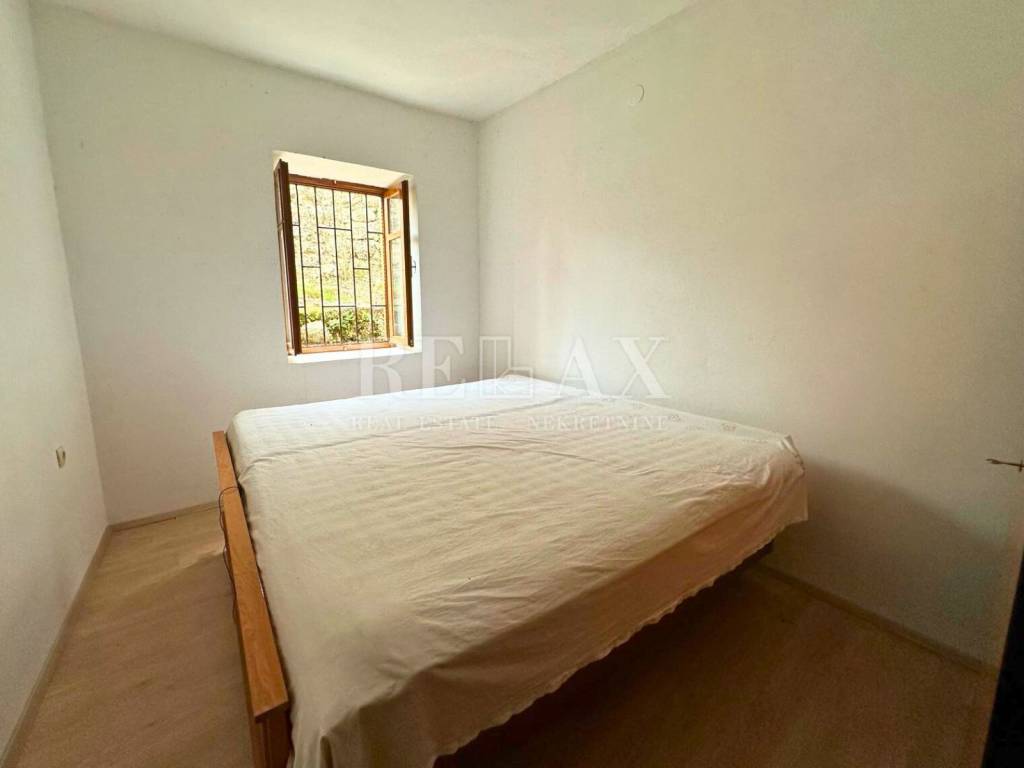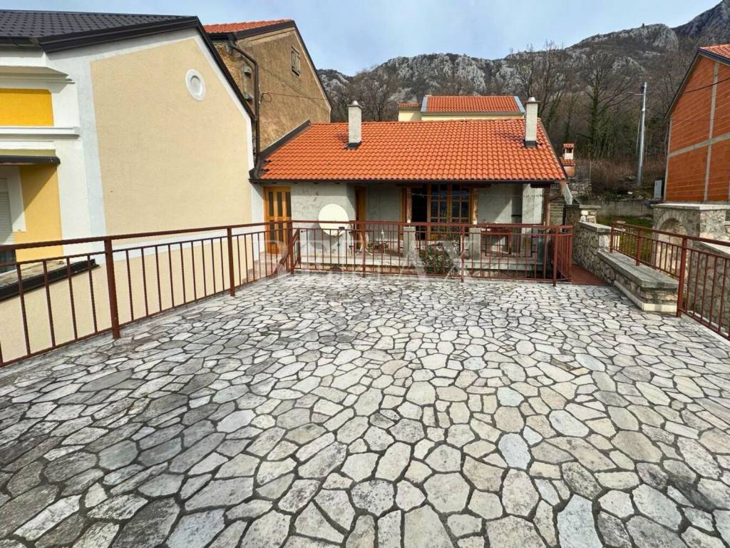 The property is a classic stone house with one apartment, a cellar, a garage, and a large terrace that provides ample space for enjoyment.