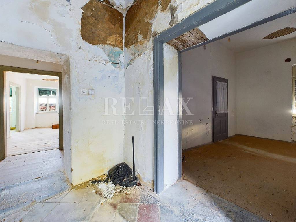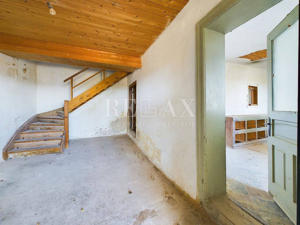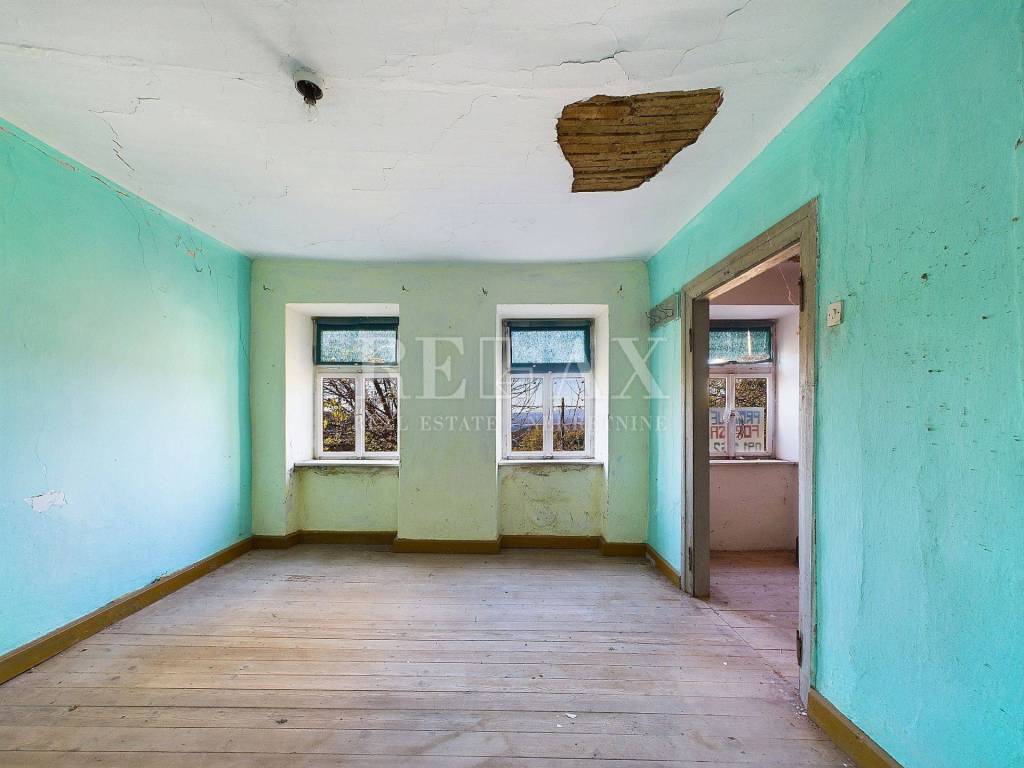 In a peaceful location in Grižane, a stone house with a plot of 432 m² is for sale. The house is enclosed by a stone wall ensuring privacy, and the first floor offers a stunning sea view.