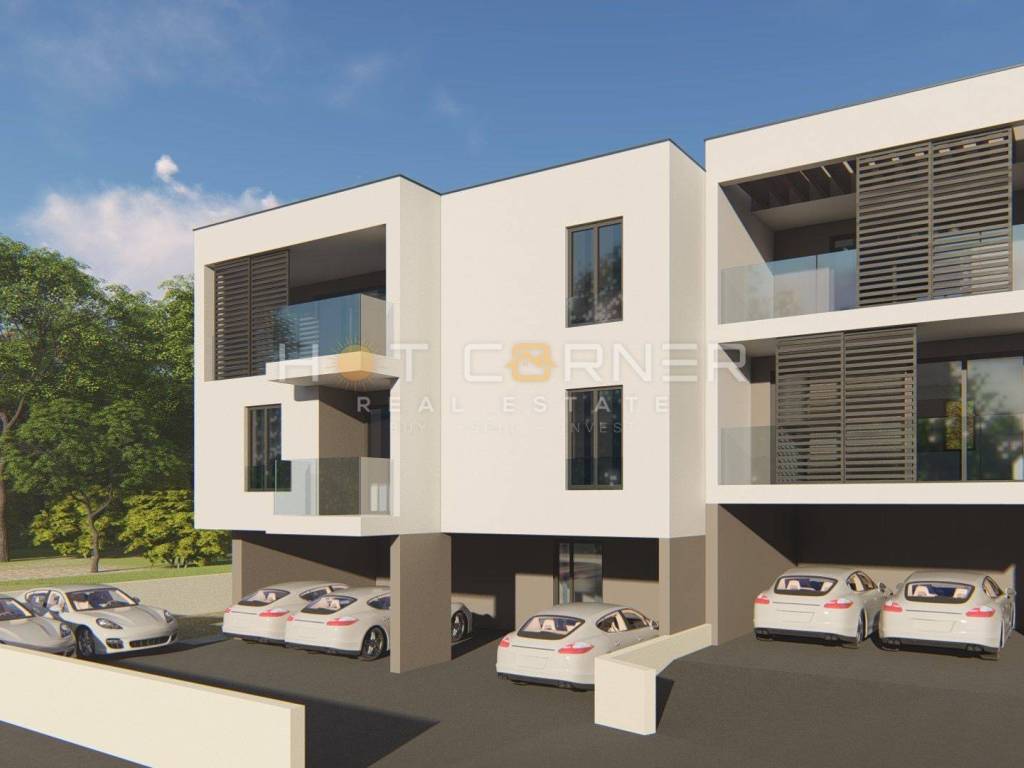 In early 2026, the construction of a small modern residential complex with 8 buildings will begin at this excellent location. Each building will contain four apartments. The buildings are designed in a subtle modern style, with facades featuring an elegant combination of light and dark cream tones, equipped according to the latest standards.