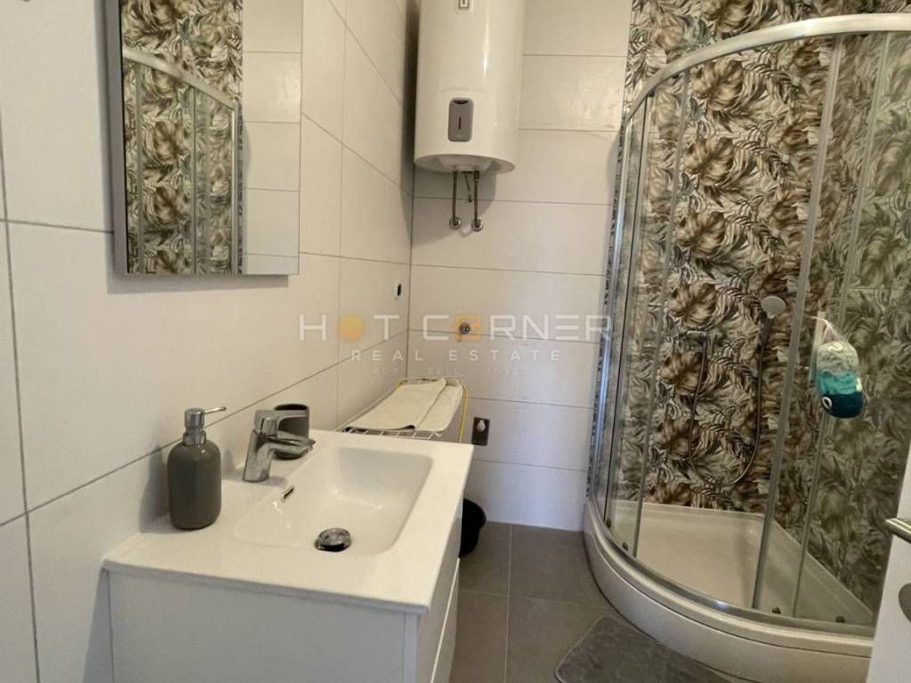 A beautiful apartment for sale in Medulin, only 600m from the sea. The apartment is located on the 2nd floor of a small residential building in a beautiful and quiet location, and consists of an entrance hall with a wardrobe, 1 bedroom, a living room with a dining area and a kitchen with access to a beautiful terrace, and a bathroom. The apartment has a security entrance door, external PVC windows with shutters, an inverter air conditioner, ceramic tiles and laminate flooring. The apartment also has 1 parking space.