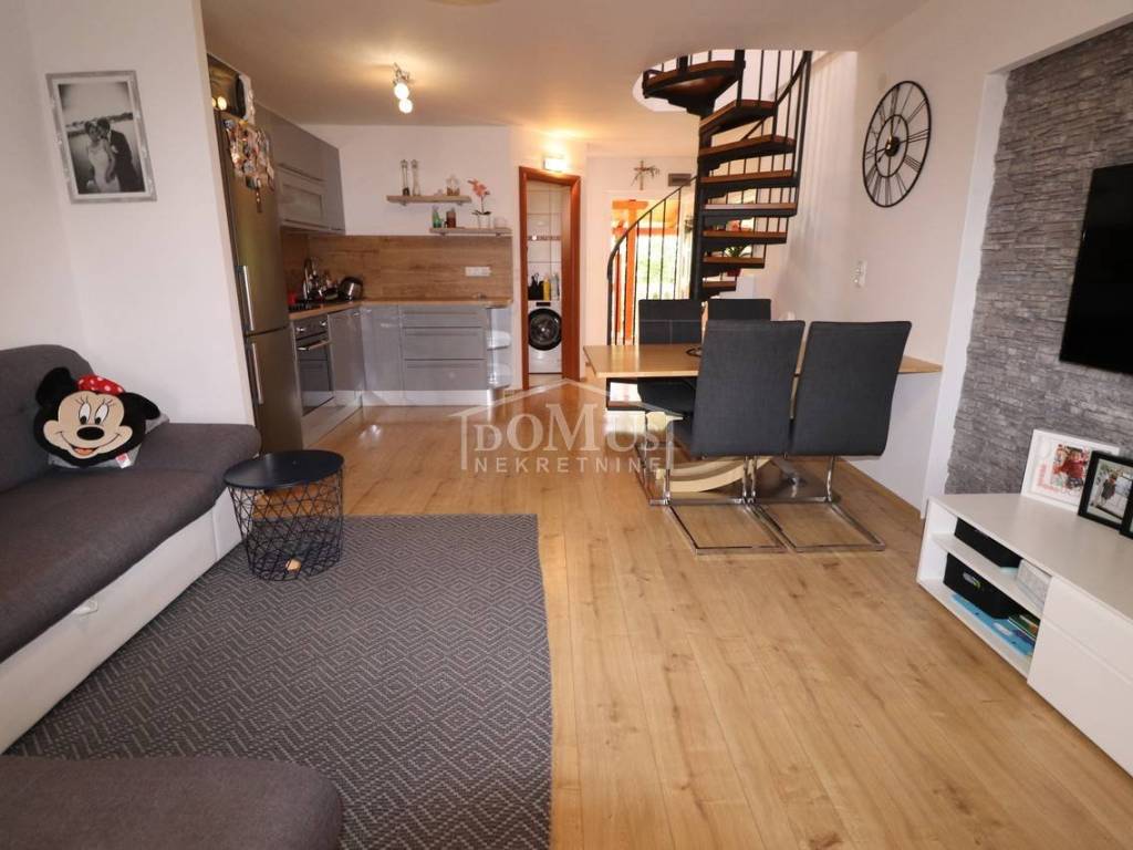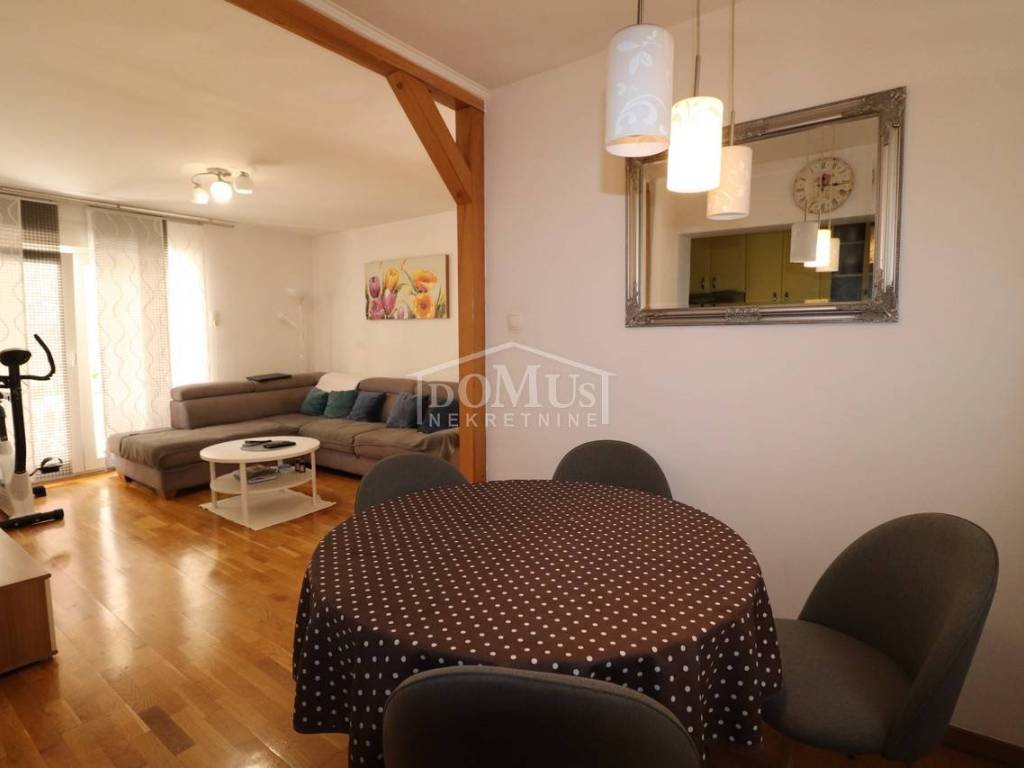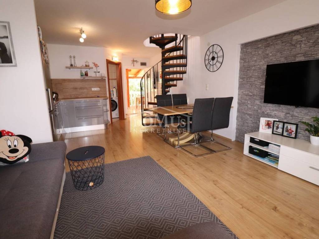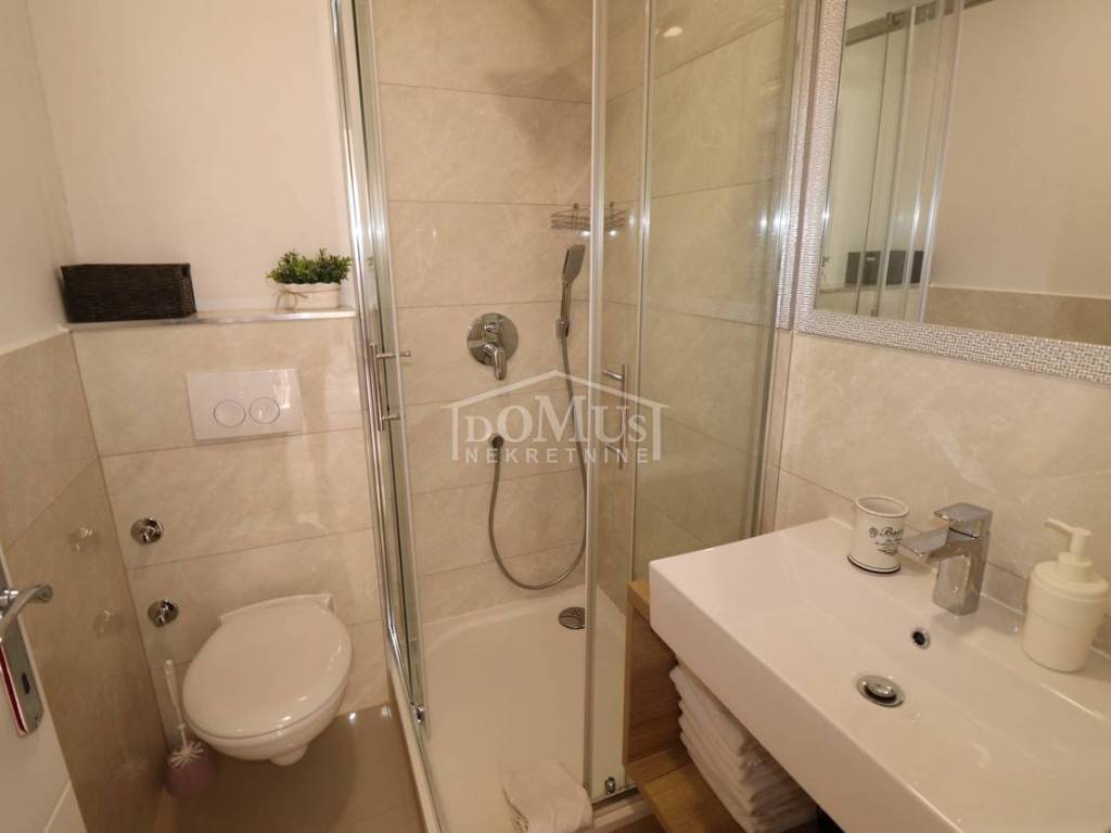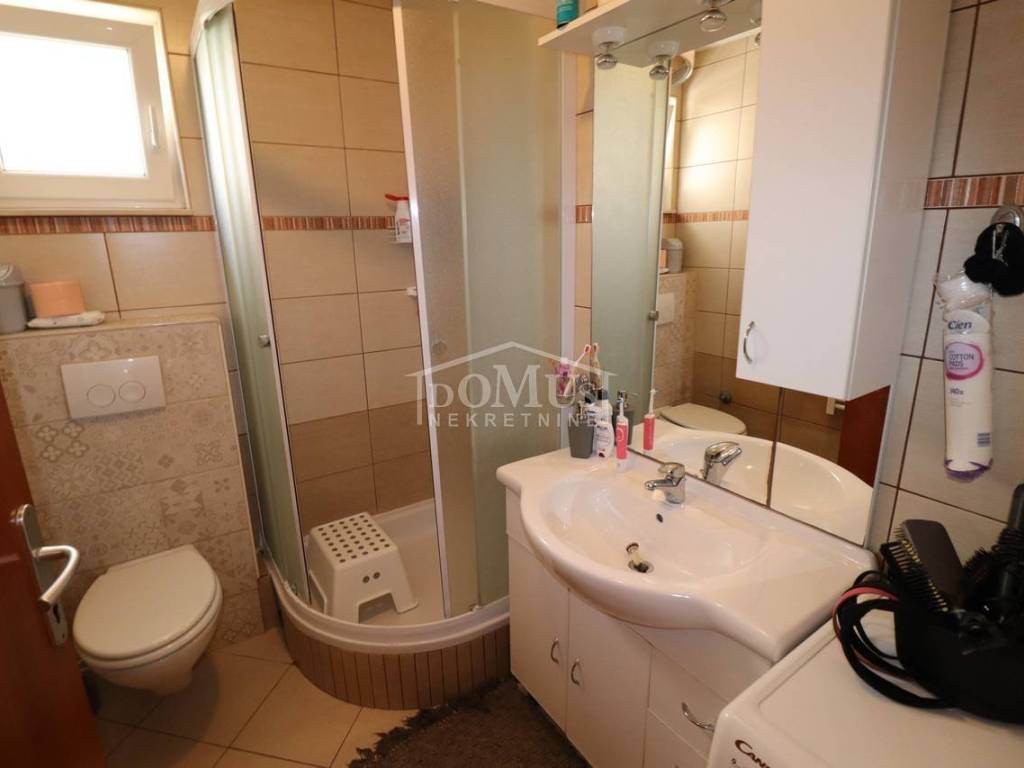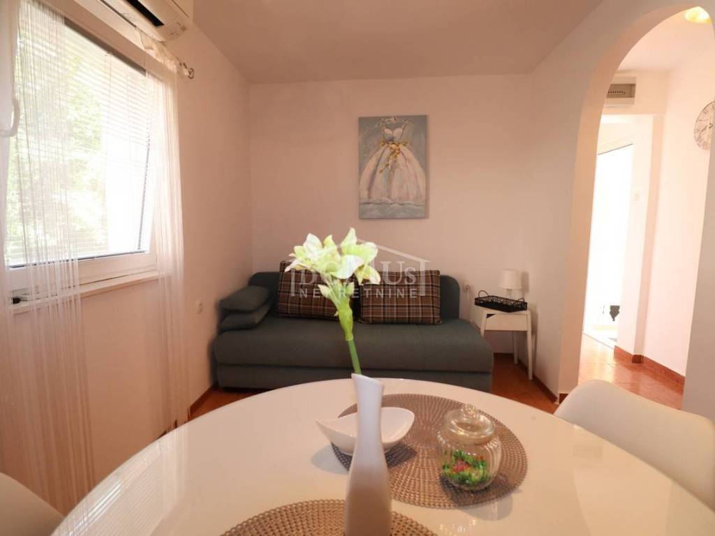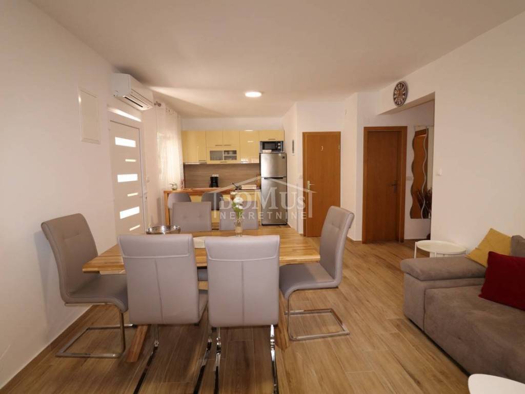 Two fully furnished apartment houses in a quiet location. House 1 has three floors with a total of 210.09 m2 of living space on a plot of 273 m2. It consists of a garage and a two-bedroom apartment on the ground floor, an external staircase leads to the first floor where there are 2 two-bedroom duplex apartments. House 2 has three floors with a total of 227.25 m2 of living space on a plot of 147 m2. It consists of a two bedroom apartment and storage on the ground floor, 2 one bedroom apartments on the first floor and a comfortable two bedroom apartment in the attic overlooking the sea. The apartments are fully furnished and the furniture is included in the price. Distance from the sea and the Blue Beach is 600 m, and from the center 500m.
