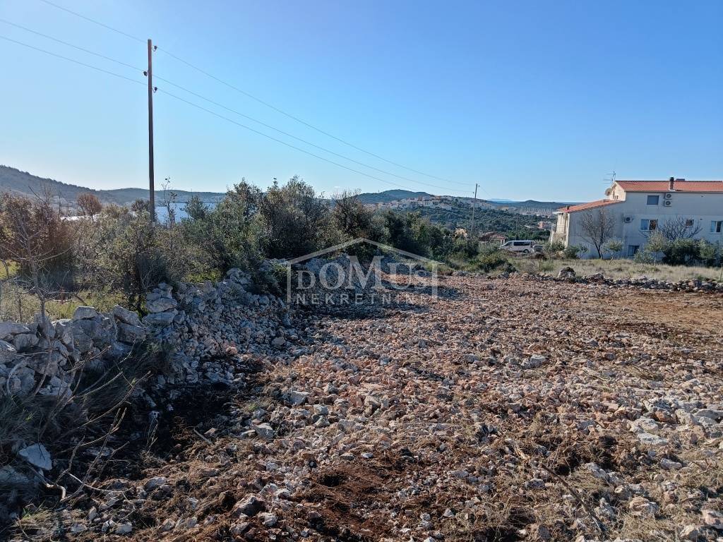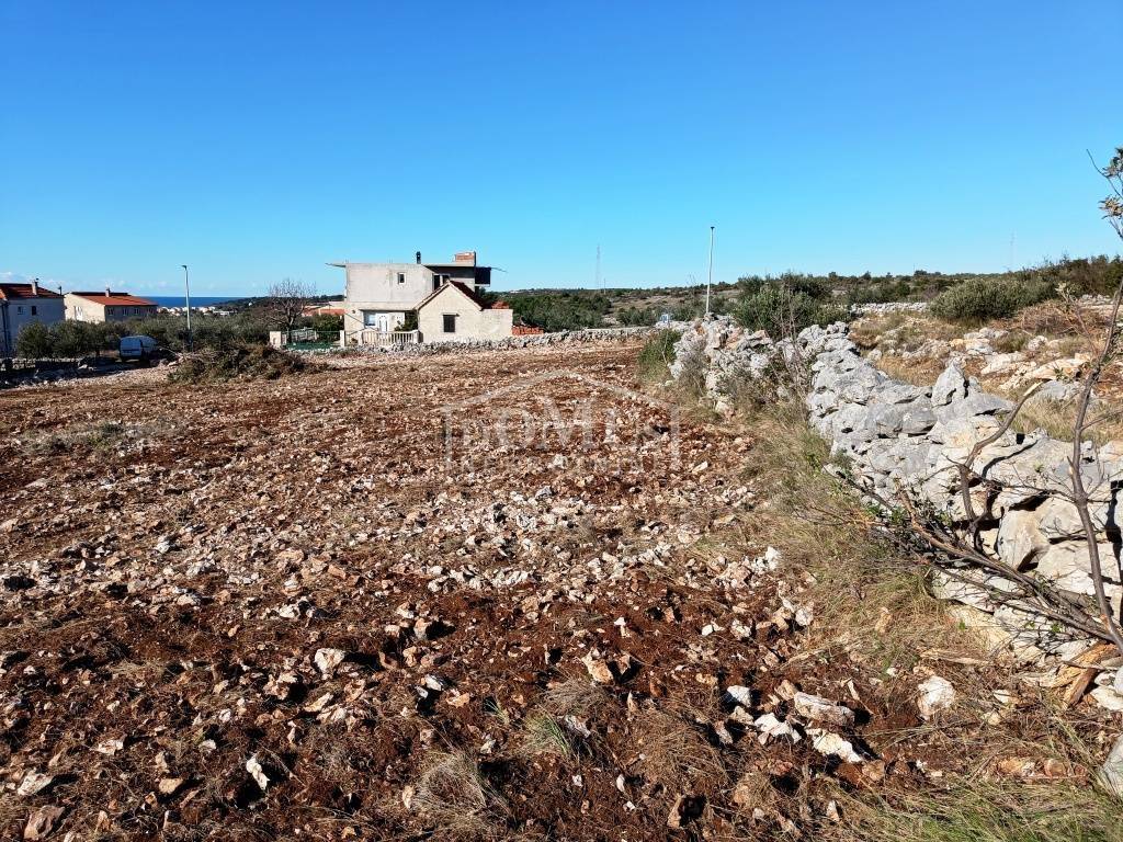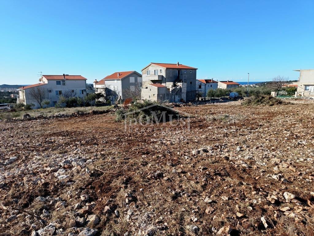 Building land with a total area of 1877 m2, above the main road in Rogoznica, only 800m from the sea. According to the spatial plan of the municipality of Rogoznica, the part of land of 1712m2 is located in a construction zone while small part of 165m2 is located in agricultural zone. The land is of regular shape, the width along the access road is 36m, and the length is about 48m. There are several olive trees and low vegetation on the land. The land has a small slope with a beautiful sea view, and the complete infrastructure is located near the terrain. Distance from the sea / beach is 800m, and 1.5 km from the center of Rogoznica.
