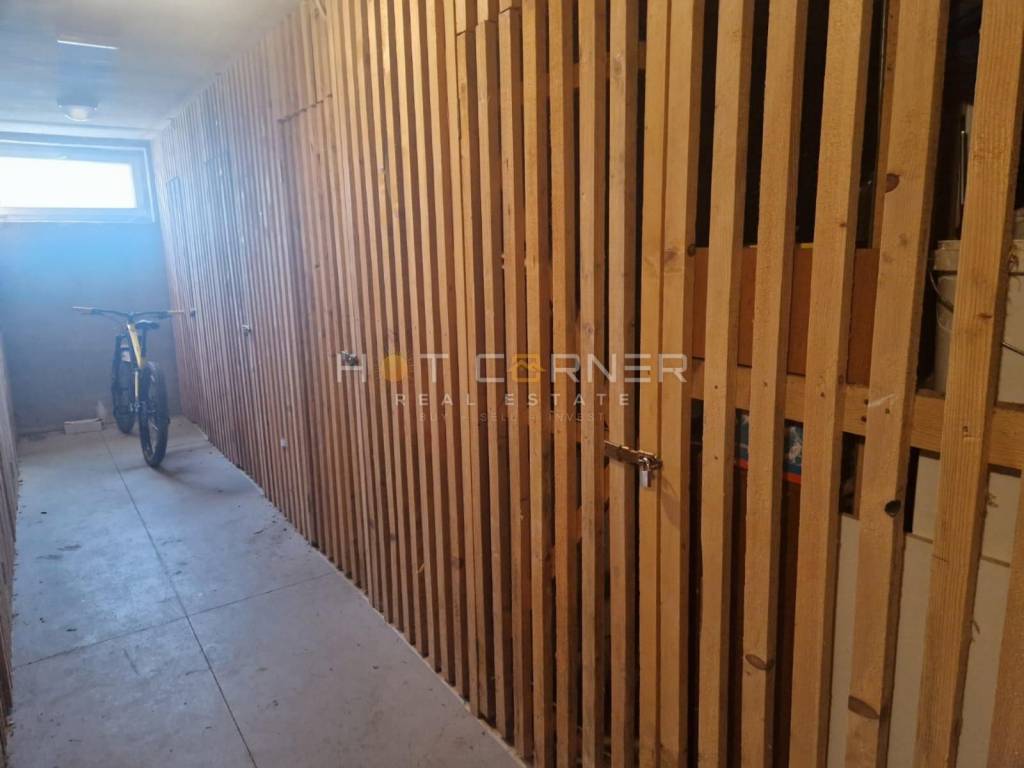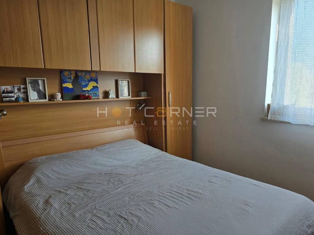 For sale is a 55 m² apartment located on the first floor of a residential building in a quiet neighborhood near Rovinj. It consists of two bedrooms, a living room, a kitchen with a dining area, a hallway, and a bathroom. The apartment also includes a 5 m² storage room and a designated parking space.