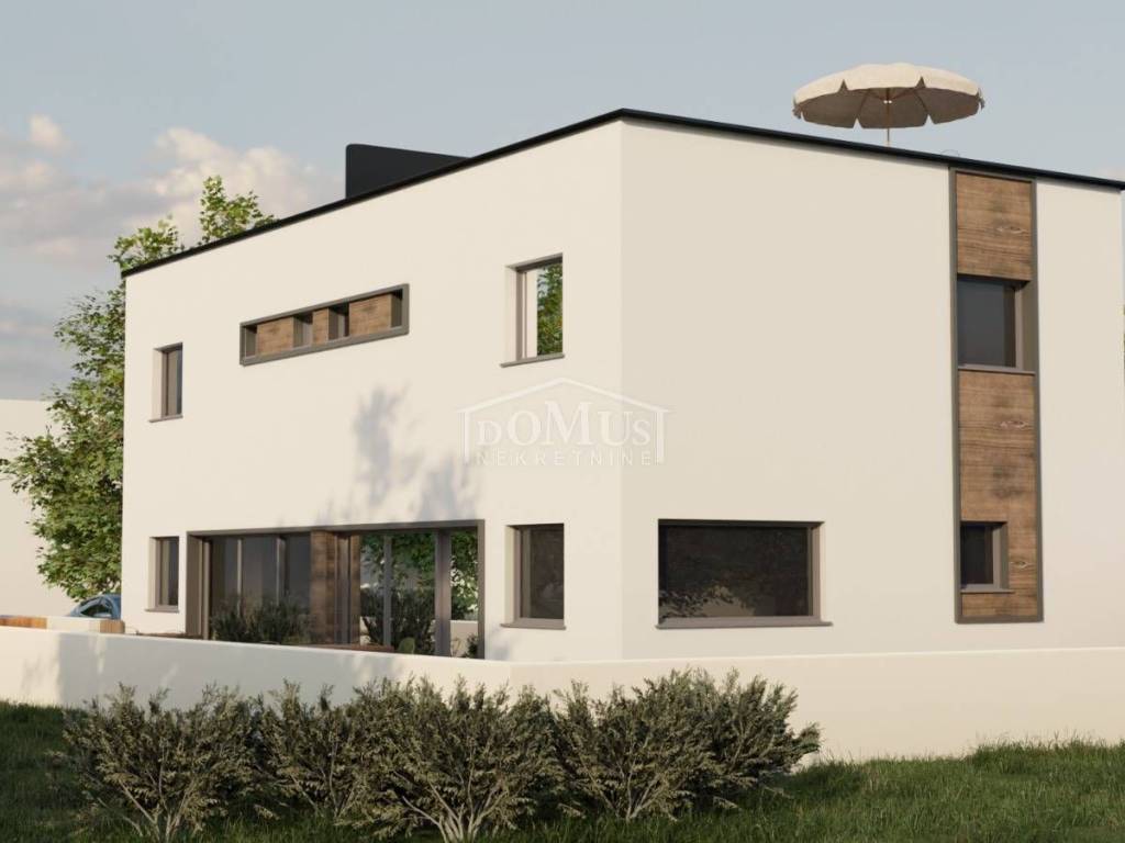 A beautiful family house with modern architecture and an excellent layout in a quiet location that provides its future owners with enjoyment and rest from the everyday hustle and bustle. The house is a semi-detached building, on two floors (ground floor + 1st floor) with 77.24m2 of living space with a beautiful garden of approx. 30m2 and parking space for 2 cars. The ground floor consists of a hallway / entrance hall, bathroom, large living room with dining room, kitchen and exit to the garden. Internal stairs lead to the 1st floor where there is a hallway, three bedrooms and a bathroom. On the house, it is possible to arrange a flat roof into an additional roof terrace of 40 m2. The house will be equipped with burglar-proof doors, PVC carpentry with blinds (electric blind lifters), high-quality ceramic floor covering, underfloor heating in all bathrooms and kitchen, air conditioning in the living room and on the 1st floor corridor, telephone and Internet installations, hour TV. The house is 950m from the beach and 1300m from the town center.
