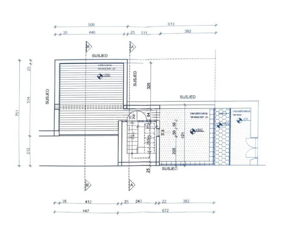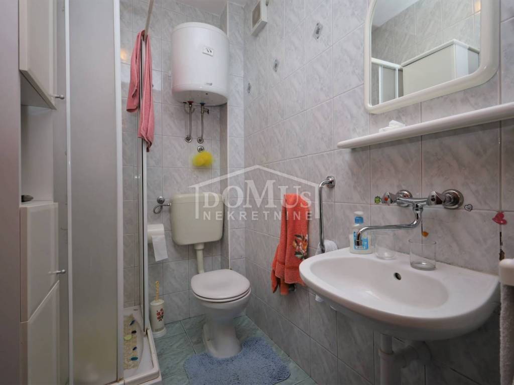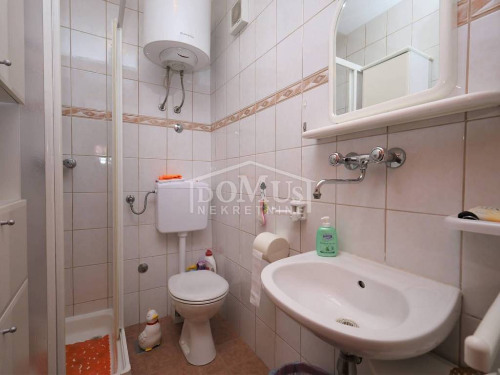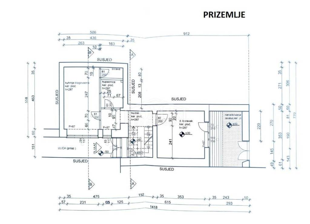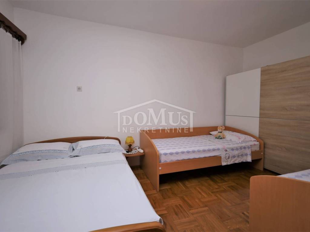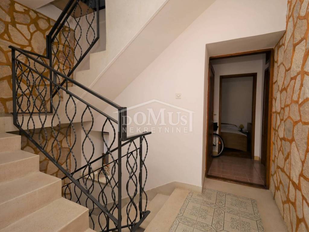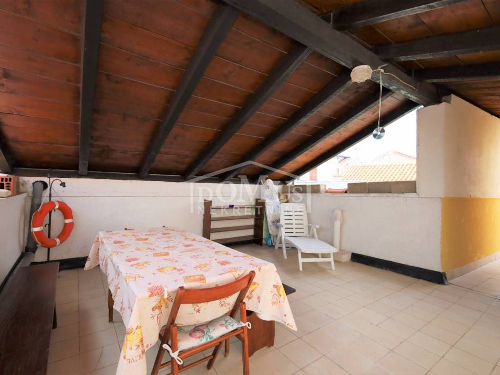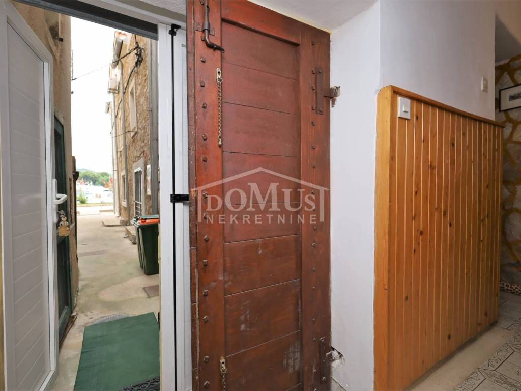 Tribunj, old town, on the island, 2nd row to the sea (20m), renovated stone house on three floors, ground floor + 1st floor + 2nd floor with a total of 141.23 m2 of usable area. The house has access to two streets, it consists on the ground floor of a terrace, a living room, a hall, a staircase, a kitchen and a dining room, a bathroom and a pantry. On the 1st floor there is a hallway, a bathroom, two bedrooms, one with a closet, and a terrace. The roof terrace is on the 2nd floor of the house, which is completely covered on the south side and not on the west side. The house is furnished and can be occupied immediately. The house is located in a pedestrian zone, it is accessible by car at a distance of 20 m from the house, parking is possible in the nearby public parking area.