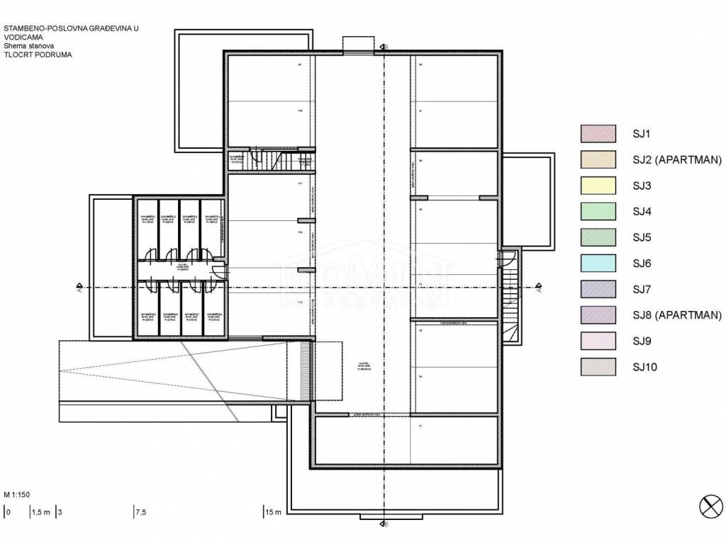 RESIDENTIAL UNIT SJ5, located on the first floor of the building, oriented to the east side, has a usable area of 96.53m2. It consists of a kitchen, dining room and living room with access to a terrace of 12.99 m2, three bedrooms, one of which has its own bathroom and balcony, hallway, bathroom, guest toilet. One garage parking space and a storage room in the basement are included in the price of the apartment.