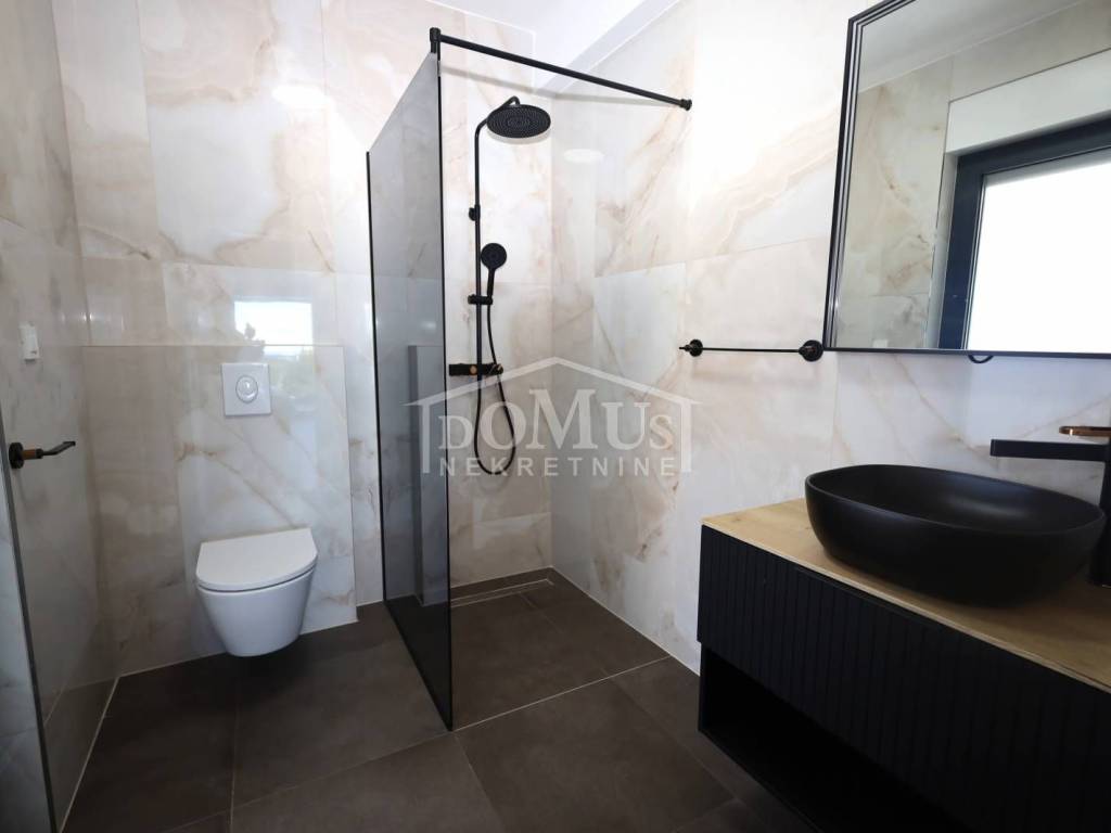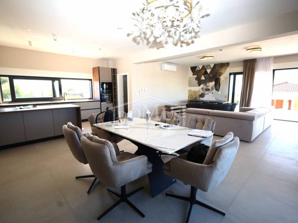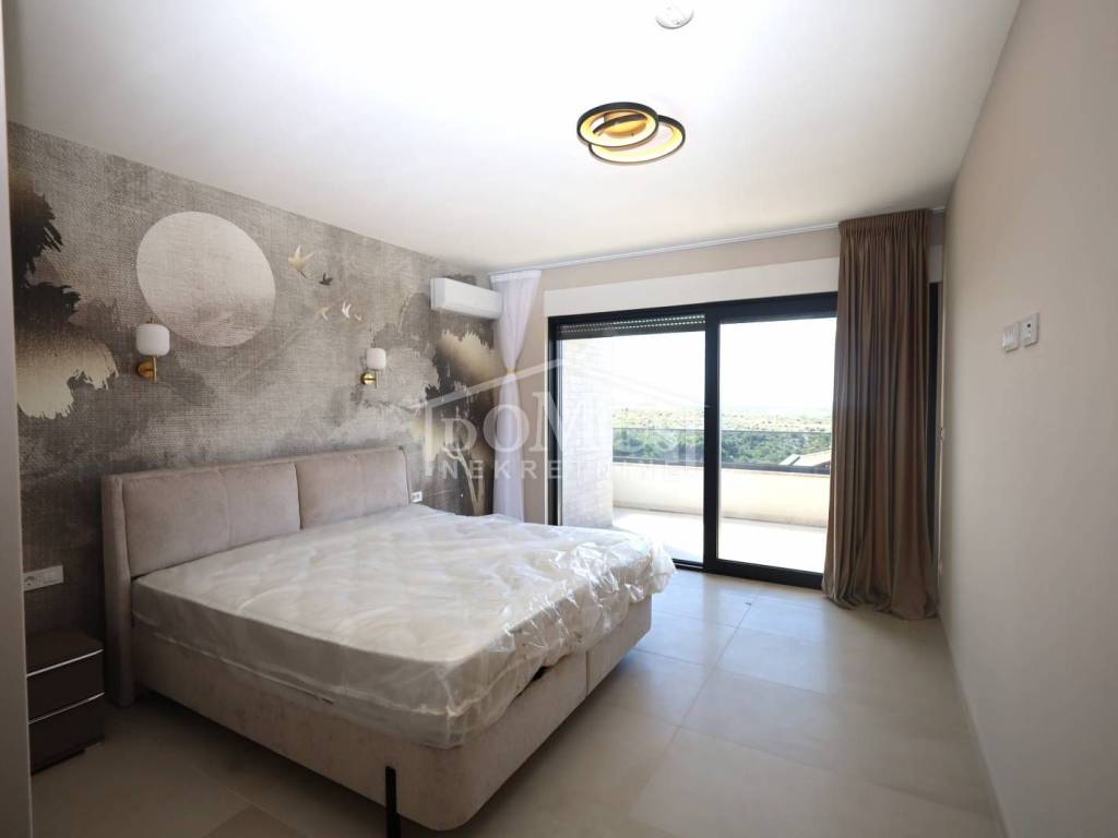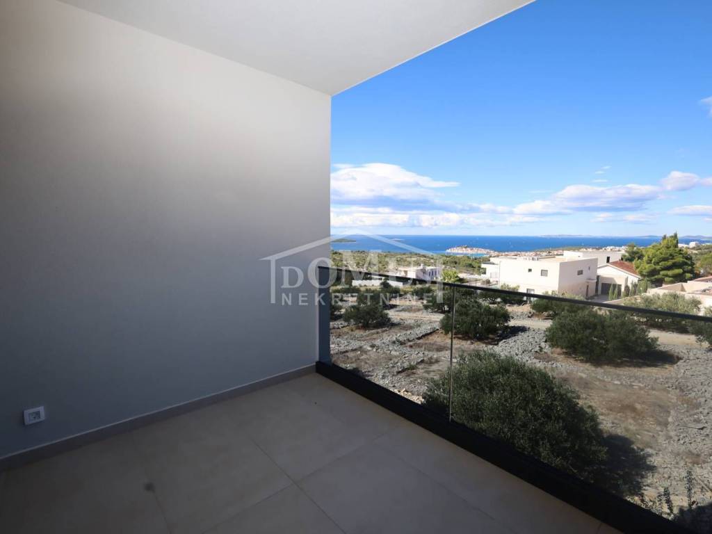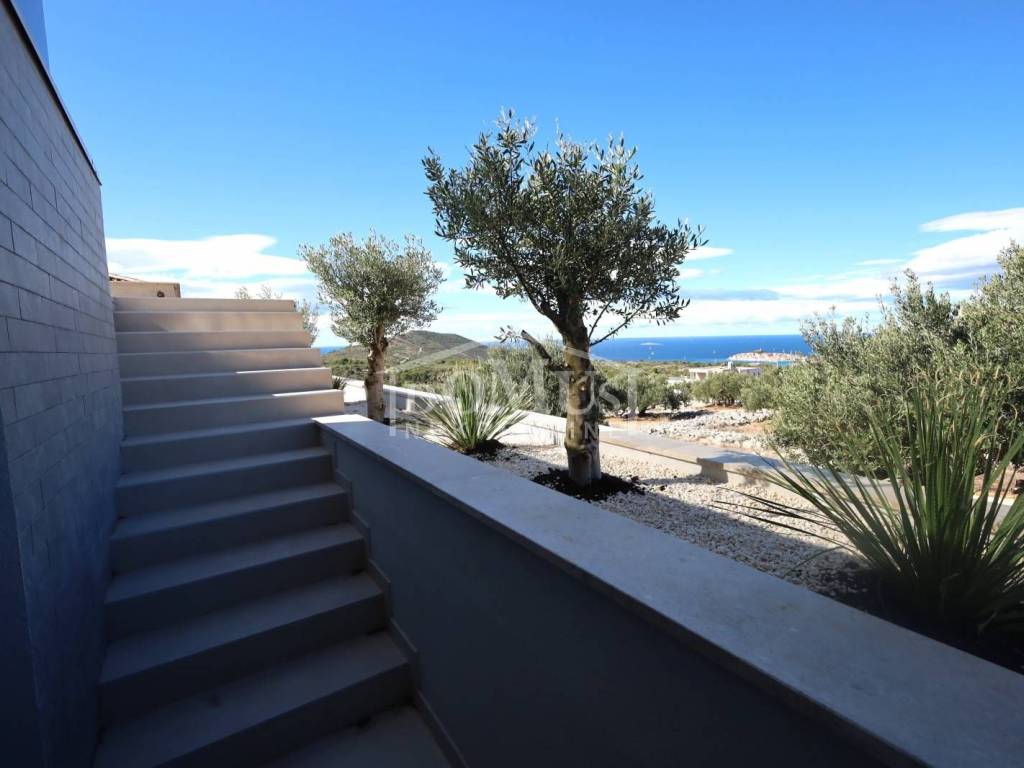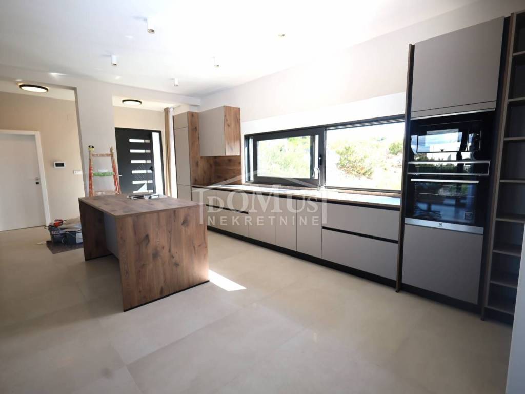Villa in Primošten offering a spectacular panoramic view of the sea and the town of Primošten. It is located on a 600 m² plot, surrounded by nature and away from the city hustle. Designed with modern architecture, clean lines, spacious terraces, and carefully selected materials.