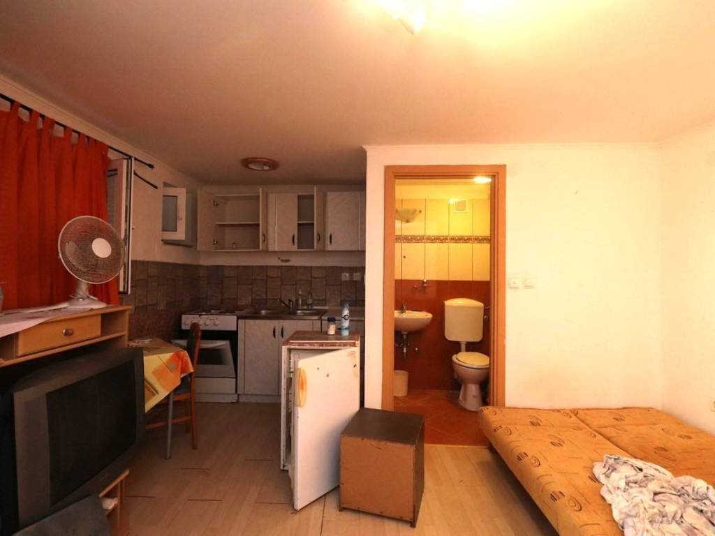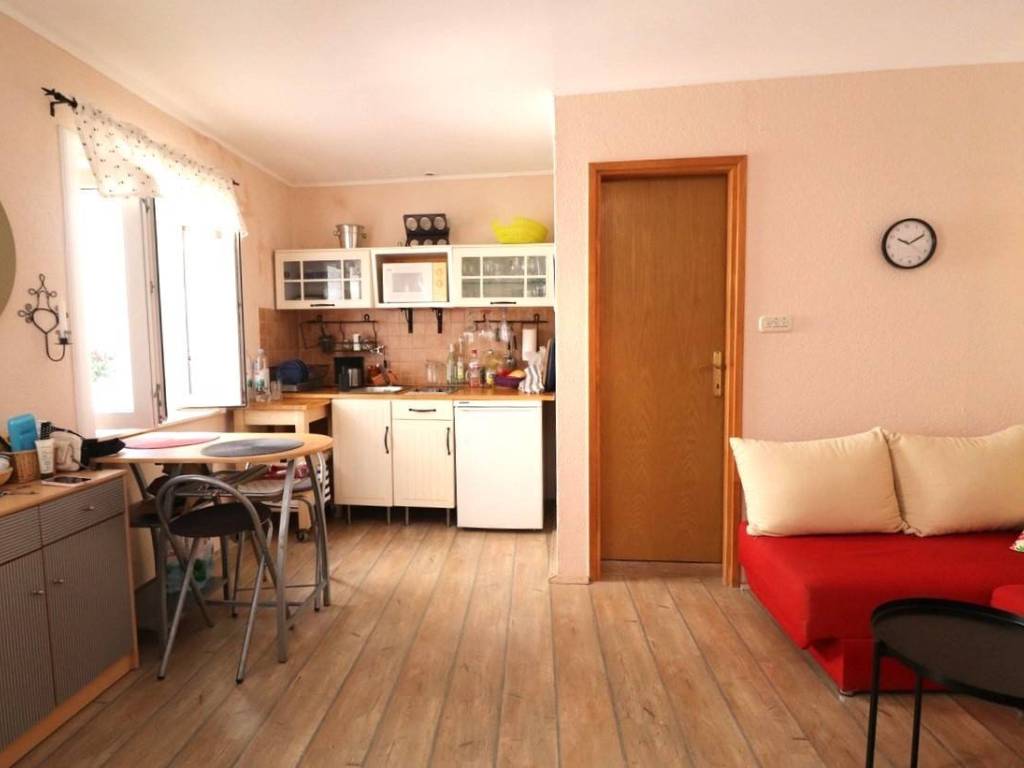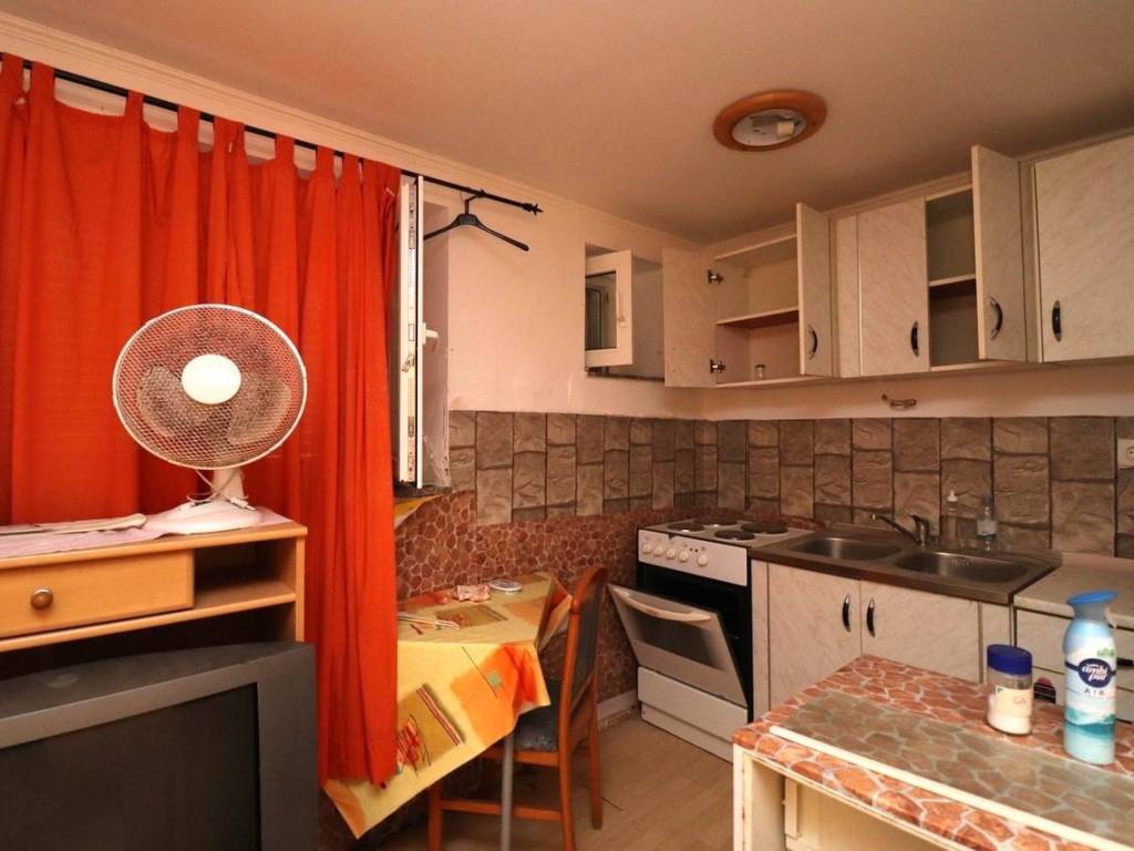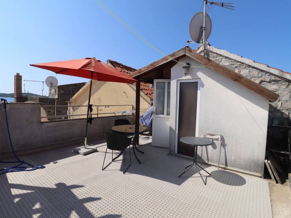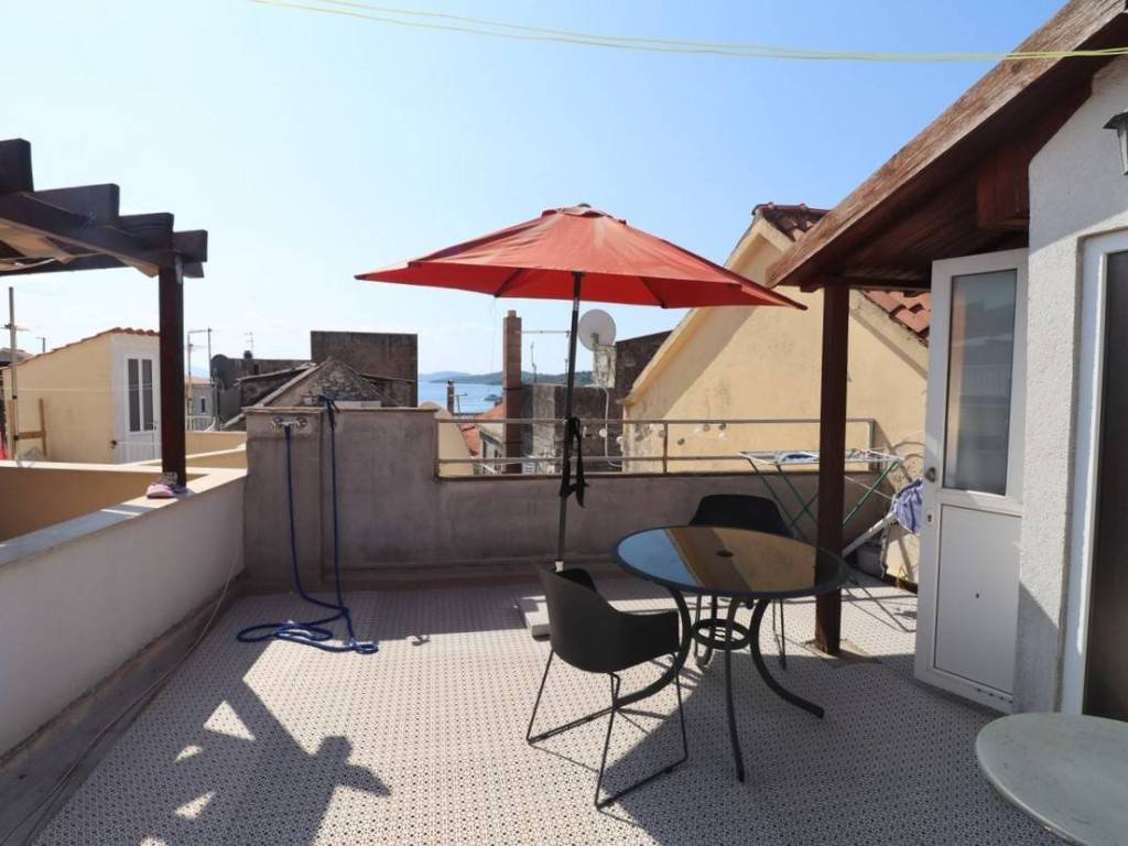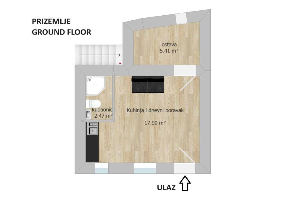In the center of Vodice, in a very attractive location, a stone house in a row on three floors with a roof terrace with a total of 87.95m2 of usable area. On the ground floor of the house there is a storage room and a studio apartment with a separate entrance that requires complete renovation. External stairs lead to the 1st floor, which consists of a hallway, two bedrooms and a bathroom. The external stairs lead to the second floor, where there is a kitchen with a dining room and a living room as a whole, as well as a bathroom. From the living room, spiral stairs lead to the roof terrace of 21.79m2 with a view of the sea and the old part of the city. The house is furnished and habitable, but investments are needed for renovation. Only 70m from the sea.