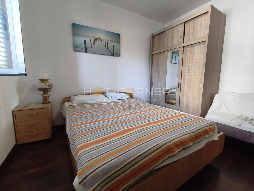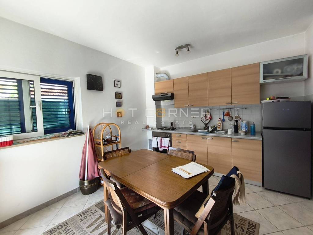 The apartment is equipped with high-quality PVC joinery with shutters, a burglar-proof entrance door and air conditioning. The floors are covered with ceramic tiles, while the bedroom provides additional warmth thanks to the laminate. It is being sold furnished, which allows future owners to move in immediately without additional investments. The water and electricity meters are separate, ensuring complete independence in the use of all resources. A special bonus of this property is a storage room/wooden room located in the basement of the building, ideal for storing summer equipment or personal belongings. The beach is just a few minutes' easy walk away, and the crystal clear sea and the scent of the pine forest provide the perfect atmosphere.