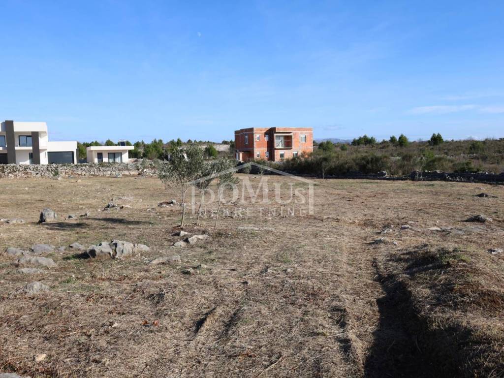 Vodice, quiet environment, building plot of 840m2, with a smaller view of the sea. According to the urban plan, it is located in the M zone - markings 1.5. undeveloped part of the construction area. The land has a smaller slope and is rectangular in shape. The length of the plot is along the access road approx. 22m, and the width is approx. 45m. Public infrastructure is located along the access road, in the immediate vicinity of the plot. It is possible to build a family house / building: cellar + basement + ground floor + 2 with 4 residential units. The land is 1,200 m from the town center, and 1,400 m from the well-maintained Vruje beach.