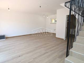 New project, only 200m from Blue beach, beautiful family house with modern architecture and functional layout. The house is a triplex, on two floors (ground floor + 1st floor) with a total usable area of 115,11 m2 with a garden 11,59 m2 (4,53m2 + 7,06m2) and 2 parking spaces. The ground floor consists of a large living room with a kitchen and a dining area with access to a large terrace and garden, a bathroom. The internal stairs lead to the 1st floor, where there is a hallway, three bedrooms and a bathroom. The house will be equipped with safety doors, PVC joinery with mosquito nets and electric roller blinds, high-quality ceramic flooring, underfloor heating in all bathrooms, air conditioning in the living room and in all bedrooms, telephone and Internet installations, satellite TV. The house is only 200m from the beach and 700m from the center.