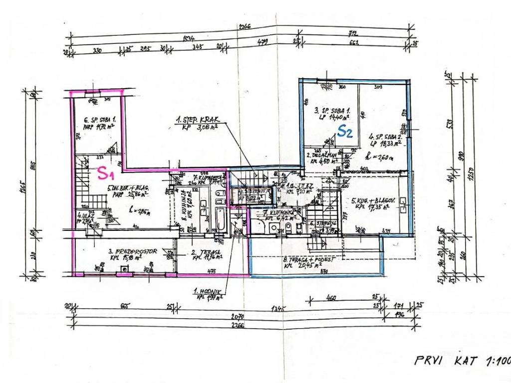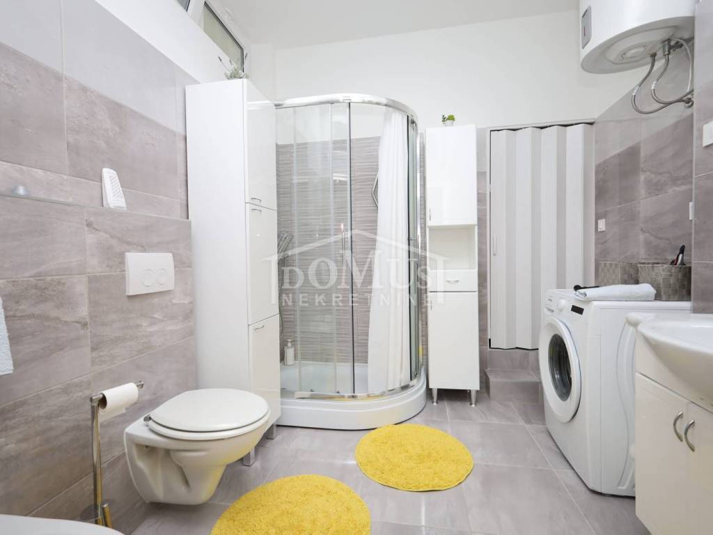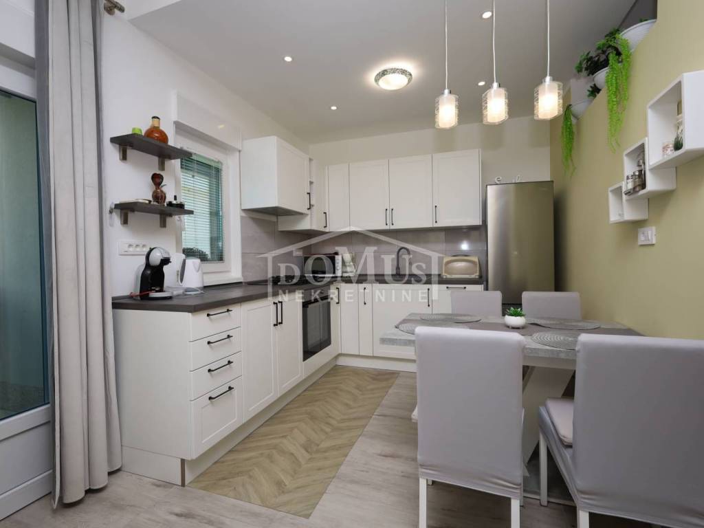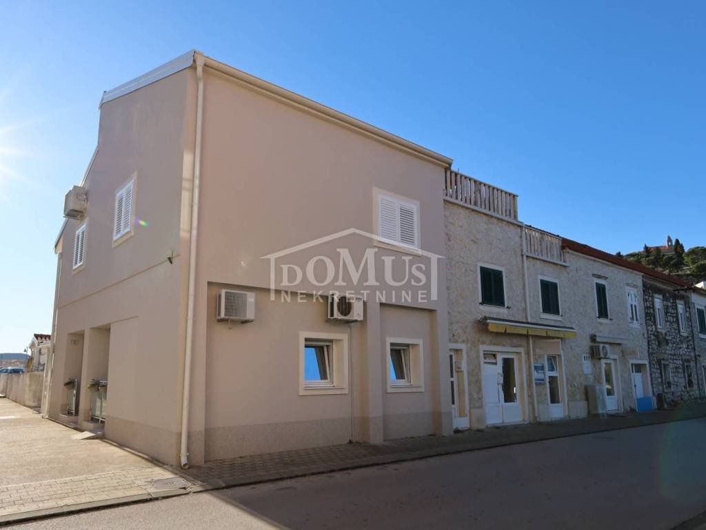 Tribunj, city center, house on three floors (ground floor + 1st floor + attic) with a total usable area of 400.52 sqm. The house was originally stone, built before 1968 and partially renovated in 1986. It is fully furnished and ready to move in immediately. It has new woodwork and a partially new facade. The ground floor of the house has a smaller commercial space of 14.82 sqm, which has a separate entrance and consists of one room. The tavern with an area of 57.70 sqm can be partially converted into a garage, the storage room has an area of 30.34 sqm. On the ground floor there is a newly renovated apartment of 57.70 sqm (49.85 m2) consisting of a hallway, kitchen with dining room, bathroom and living room. There are two apartments on the 1st floor and in the attic, i.e. two two-story residential units, Apartment S1: living area 97.11 m², consists of terrace, veranda, kitchen with dining room and living room, bathroom, one bedroom and two smaller bedrooms in the attic. Apartment No. 2: With an area of 147.64 m², it consists of a spacious entrance area, bathroom, living room with kitchen and access to the terrace, bedroom and in the attic of three bedrooms, bathroom and terrace. Both apartments have spacious terraces overlooking the sea and the town of Tribunj. The house can be reached by car. The house does not have a garden, but there is the possibility of parking for four vehicles on the public surface. It is located 300 m from Zamalin beach.