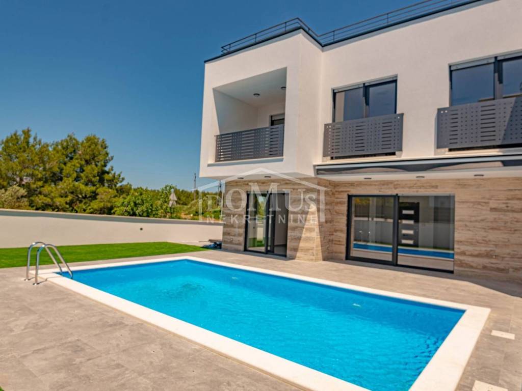 Vodice, newly built Villa 141.88m2, garden 250m2, pool, sea view.