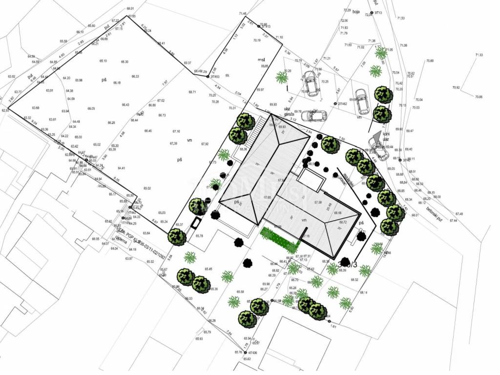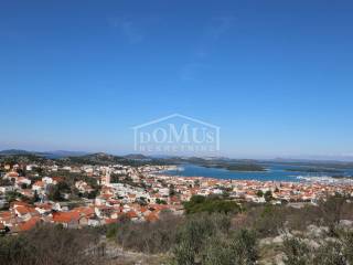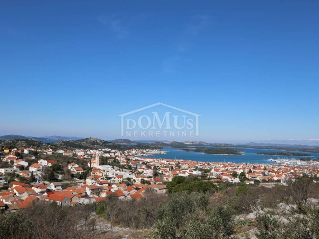 Spacious building plot with an excellent sea view, where construction can begin immediately, as the building permit has already been obtained. The plot is located on the island of Murter and offers views of the Kornati Islands, but also of the towns of Murter and Betina. The total plot area is 1,814 m² and consists of several smaller plots. It can be divided into two building plots. For half of the plot, a final building permit has been issued for the construction of a detached house (ground floor + attic) with 3 residential units with a total area of 272.57 m². The plot is located on the edge of the construction area, has a paved access road and complete infrastructure directly on the asphalt road. The sea view is unobstructed. The distance to the sea and Čigrađa beach is 800 m, and to the city center 1,450 m.