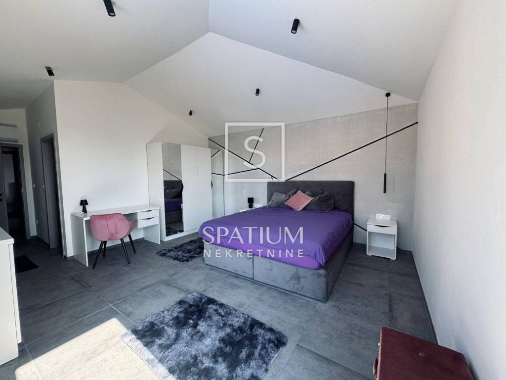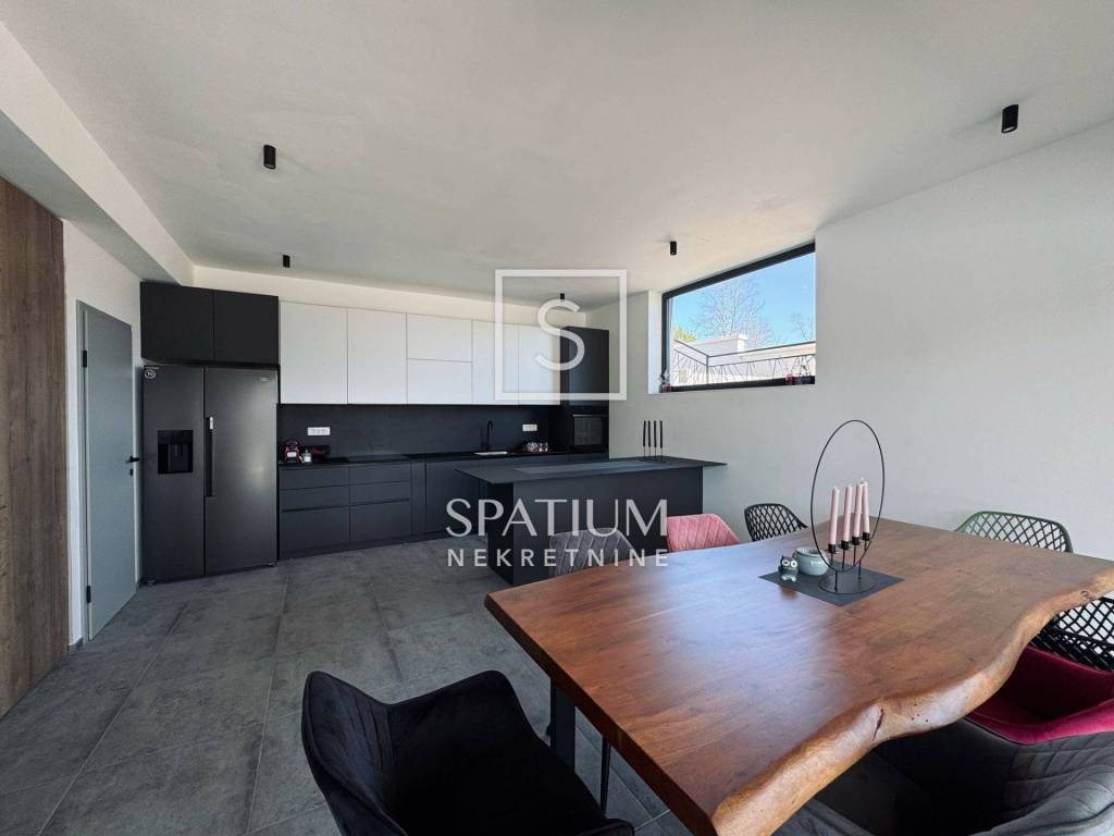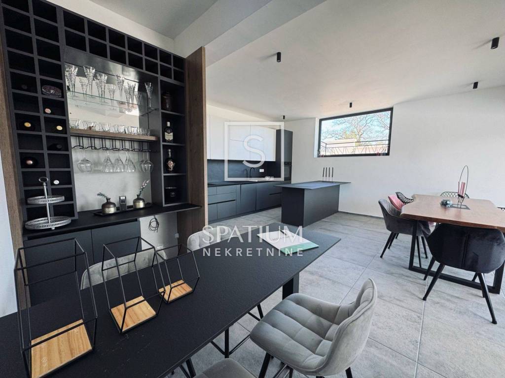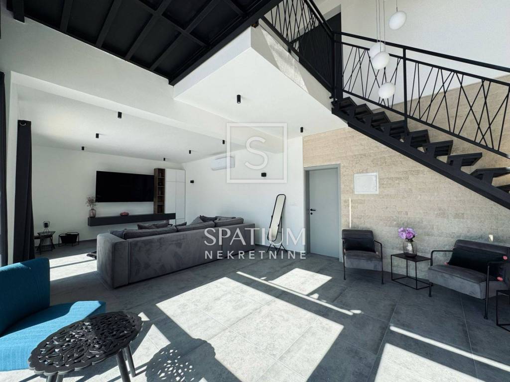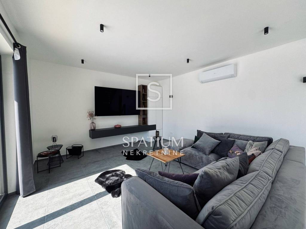 MARČANA, we offer a beautiful modern villa situated in a peaceful setting near Marčana. The villa is located on a plot of 664 m². The property consists of a basement and ground floor with a total area of 268 m². The basement features a bright entrance hall, storage room, guest toilet, kitchen with dining area, spacious living room with access to a covered terrace and a 36 m² swimming pool, as well as a pool equipment room. The upper floor houses three bedrooms, each with its own en-suite bathroom, and a laundry room. The villa is air-conditioned, has a landscaped garden, parking for 2–3 cars, and is being sold fully equipped and furnished.
